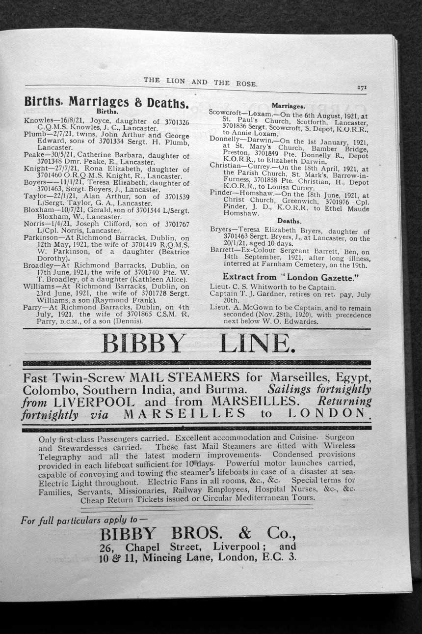 Collections - Publications The Lion and The Rose, The Regimental Journal Volume 9 - Number 4 - October 1921