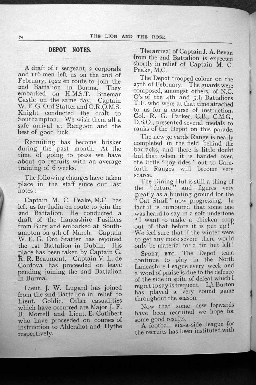 Collections - Publications The Lion and The Rose, The Regimental Journal Volume 10 - Number 2 - April 1922