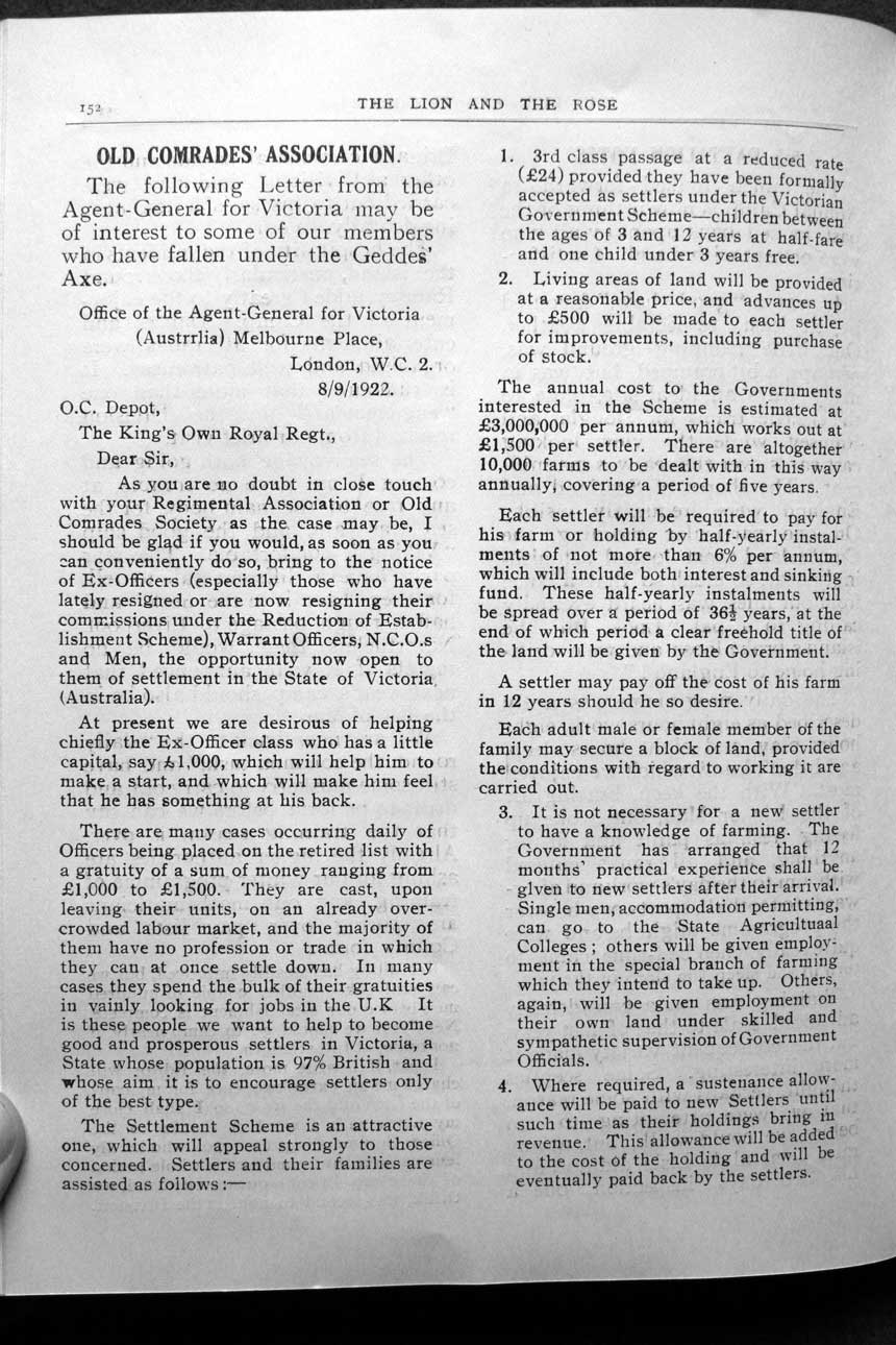 Collections - Publications The Lion and The Rose, The Regimental Journal Volume 10 - Number 4 - October 1922