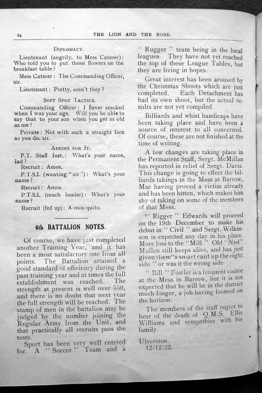 Collections - Publications The Lion and The Rose, The Regimental Journal Volume 11 - Number 1 - January 1923