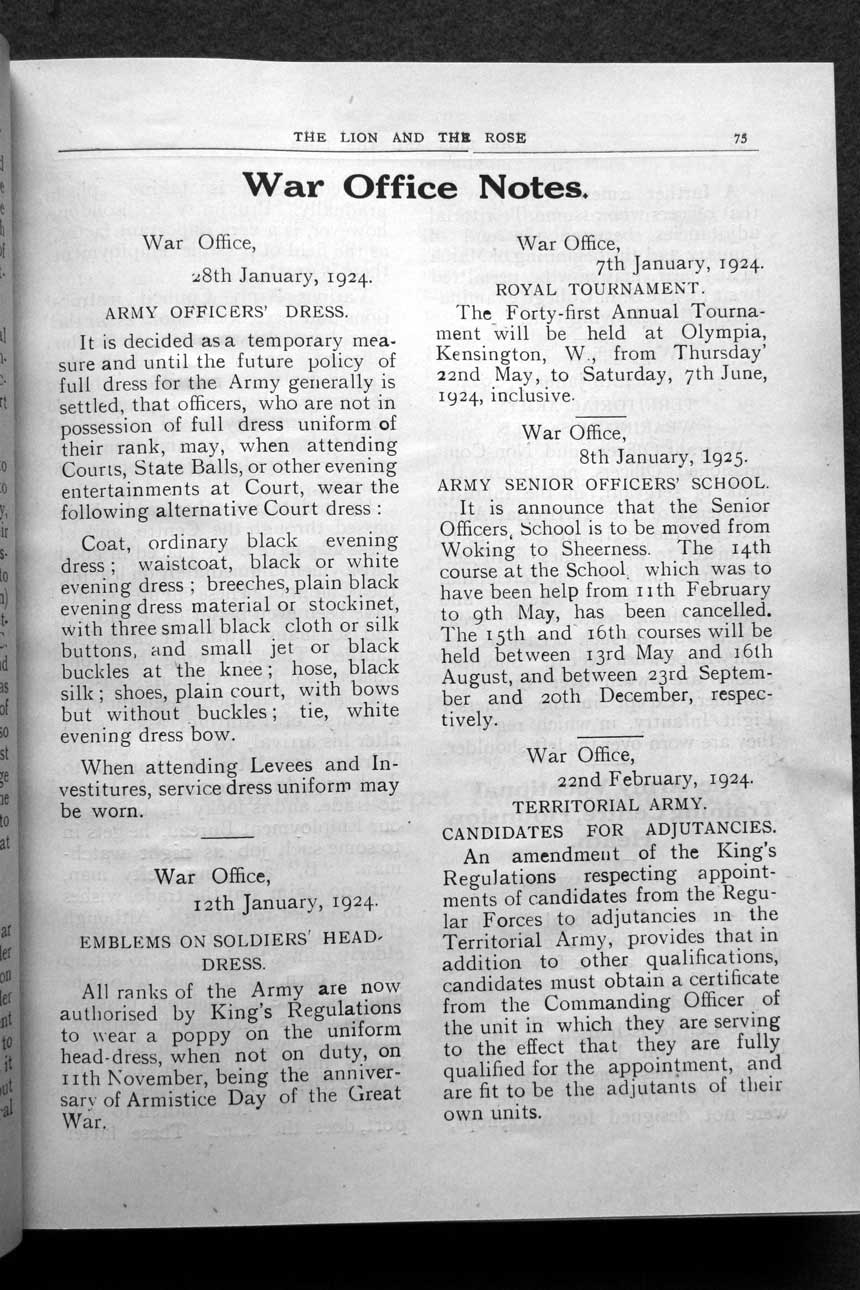 Collections - Publications The Lion and The Rose, The Regimental Journal Volume 12 - Number 2 - April 1924