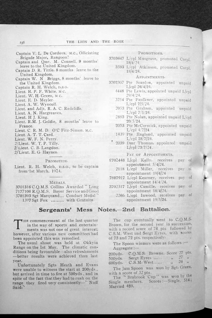 Collections - Publications The Lion and The Rose, The Regimental Journal Volume 12 - Number 4 - October 1924