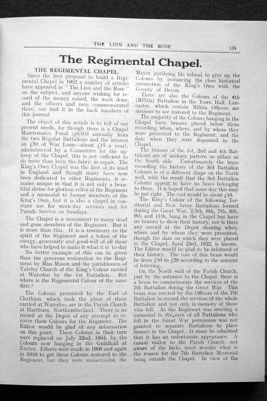 Collections - Publications The Lion and The Rose, The Regimental Journal Volume 15 - Number 4 - October 1927