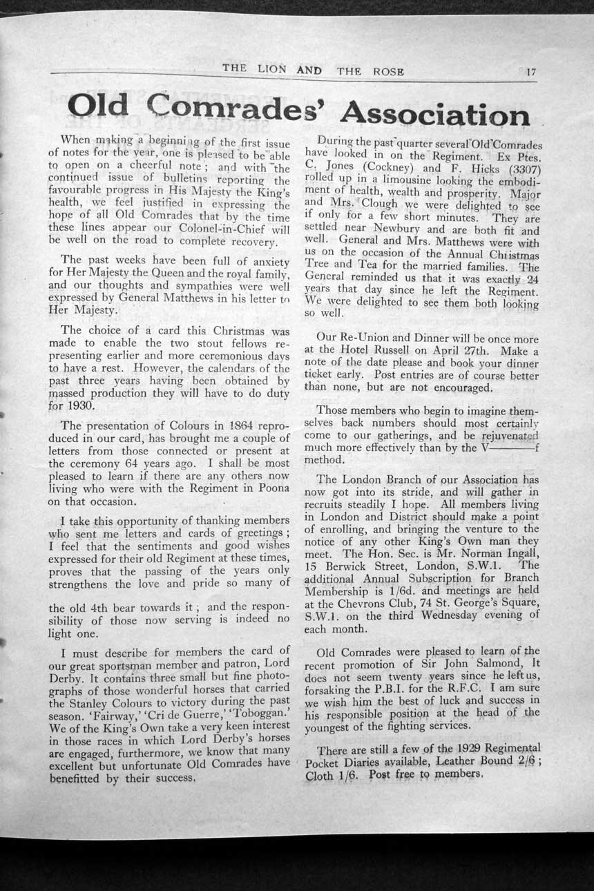 Collections - Publications The Lion and The Rose, The Regimental Journal Volume 17 - Number 1 - February 1929