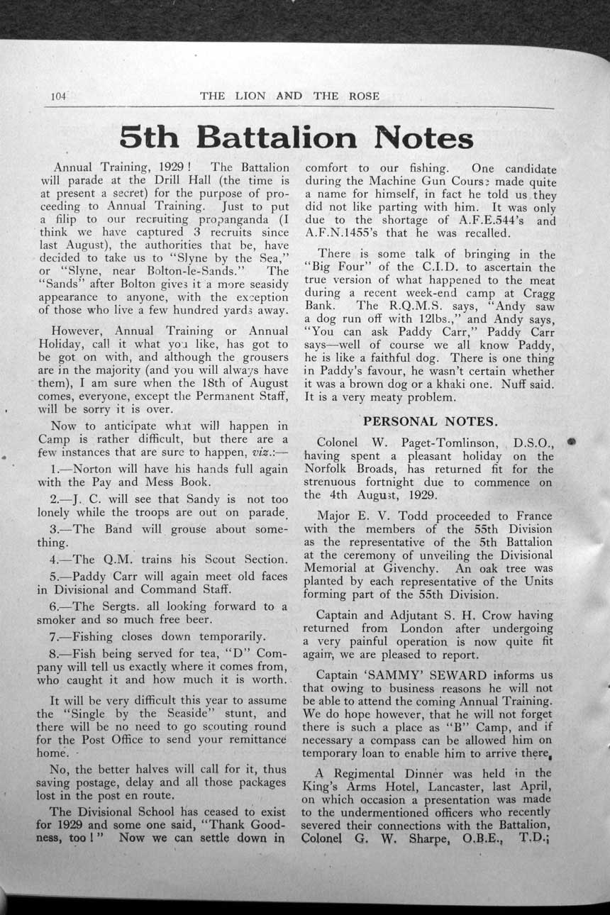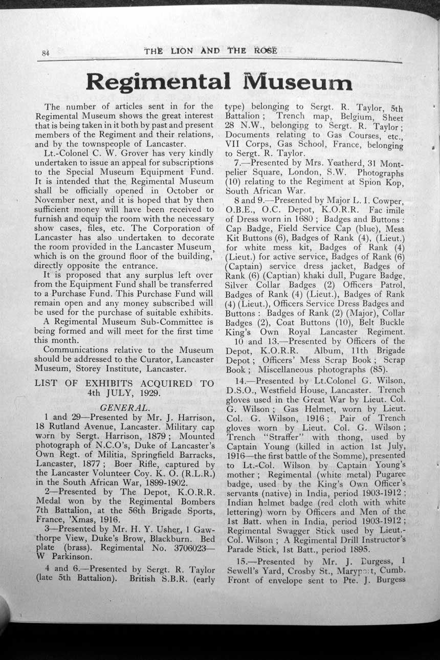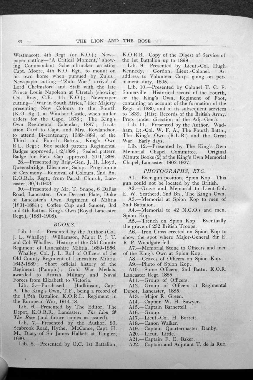 Collections - Publications The Lion and The Rose, The Regimental Journal Volume 17 - Number 3 - August 1929