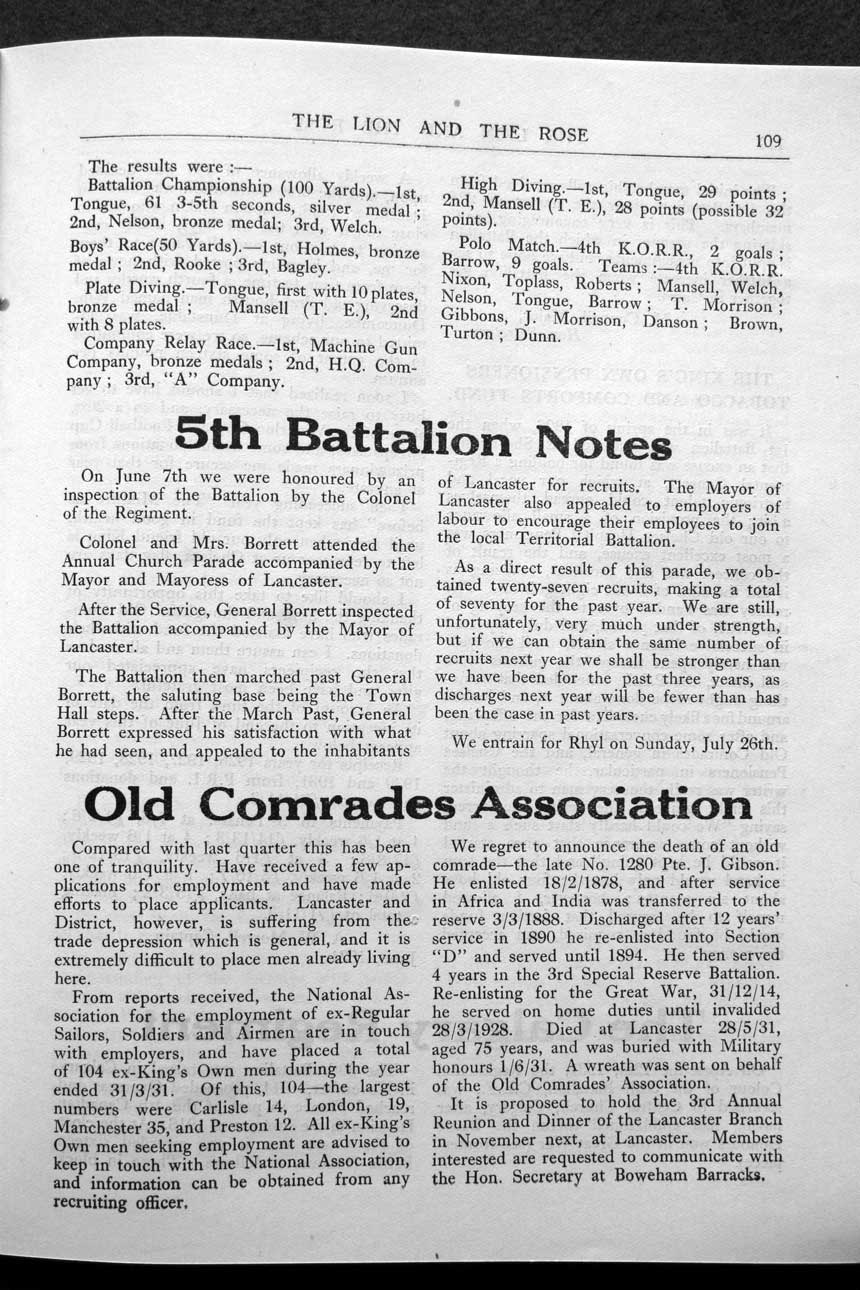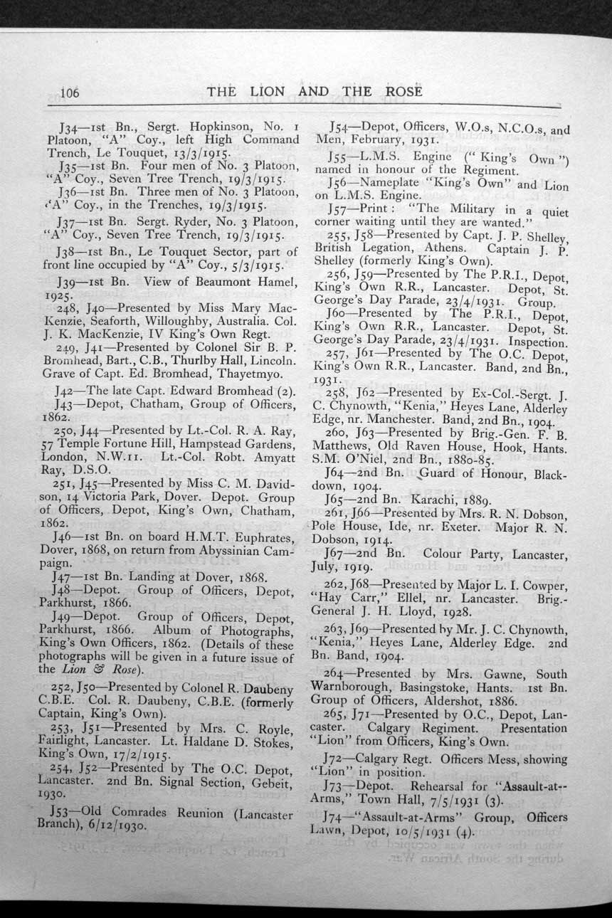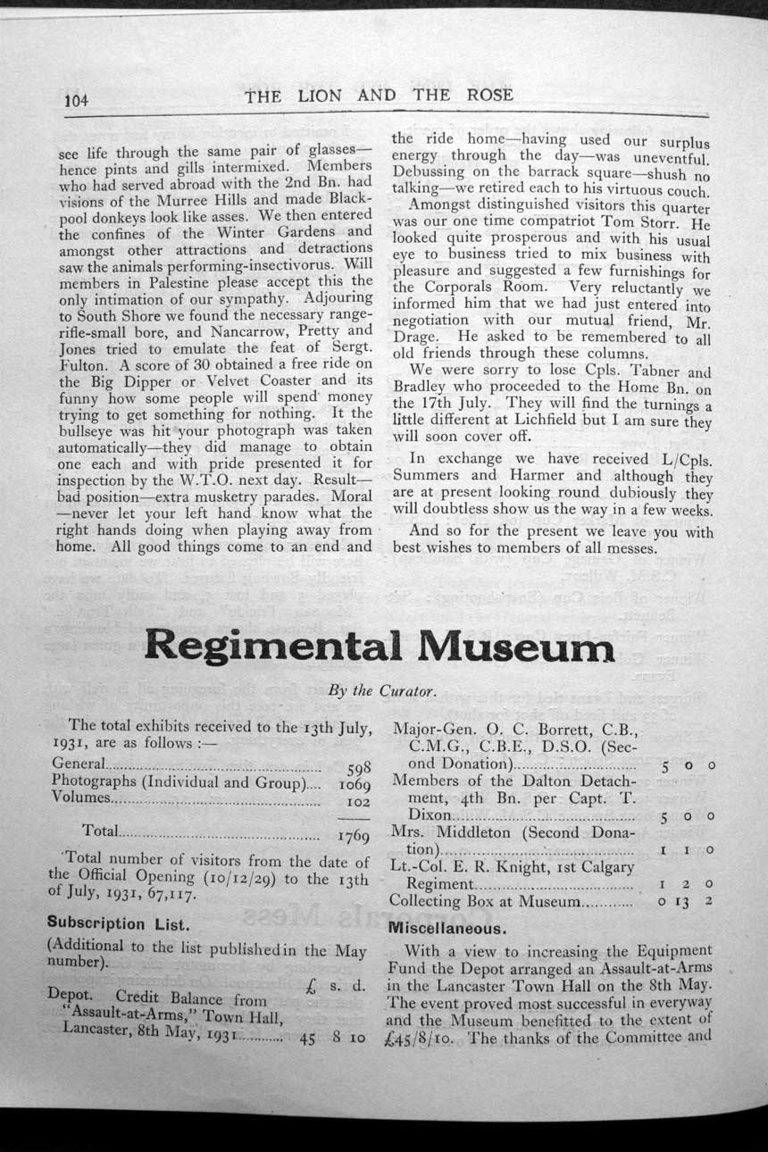 Collections - Publications The Lion and The Rose, The Regimental Journal Volume 19 - Number 3 - August 1931