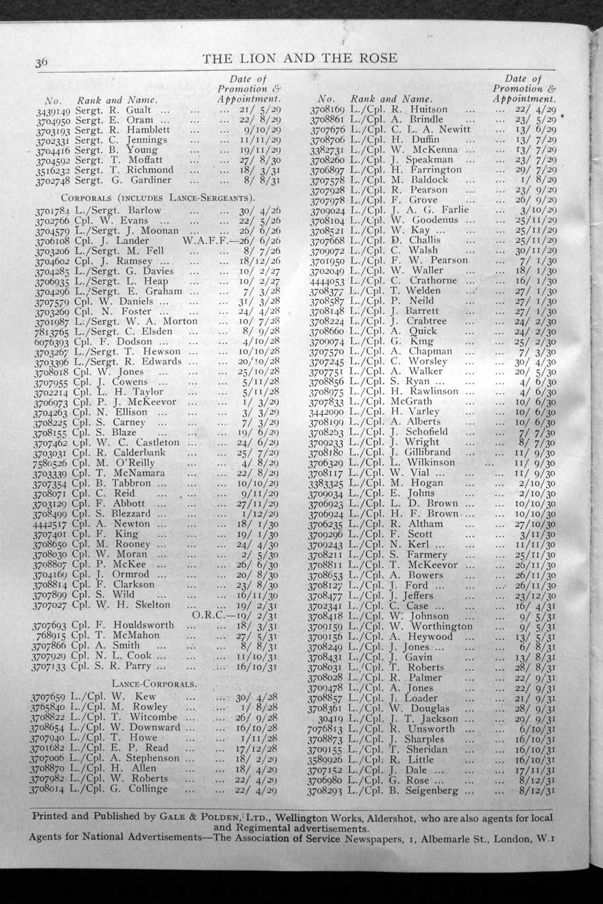 Collections - Publications The Lion and The Rose, The Regimental Journal Volume 20 - Number 1 - February 1932