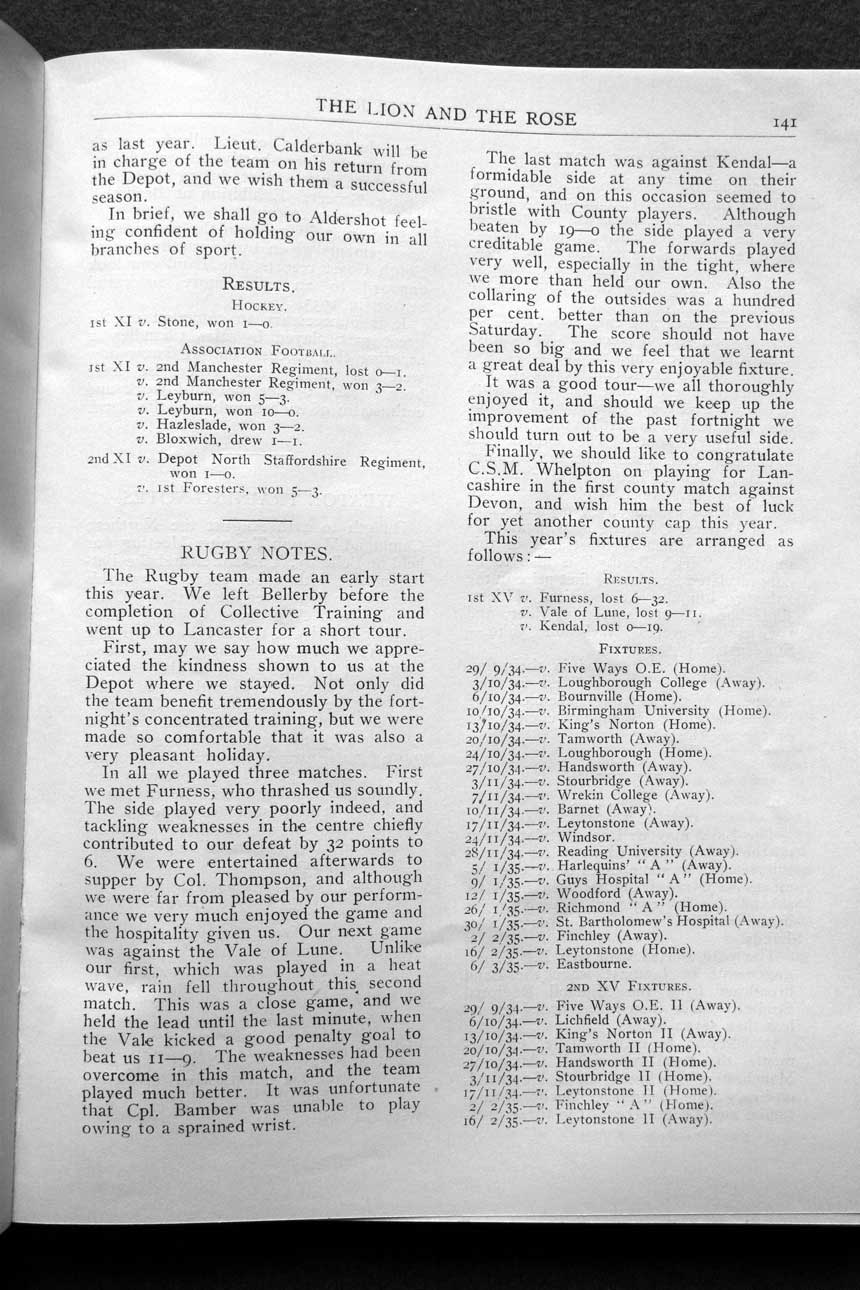 Collections - Publications The Lion and The Rose, The Regimental Journal Volume 22 - Number 4 - November 1934