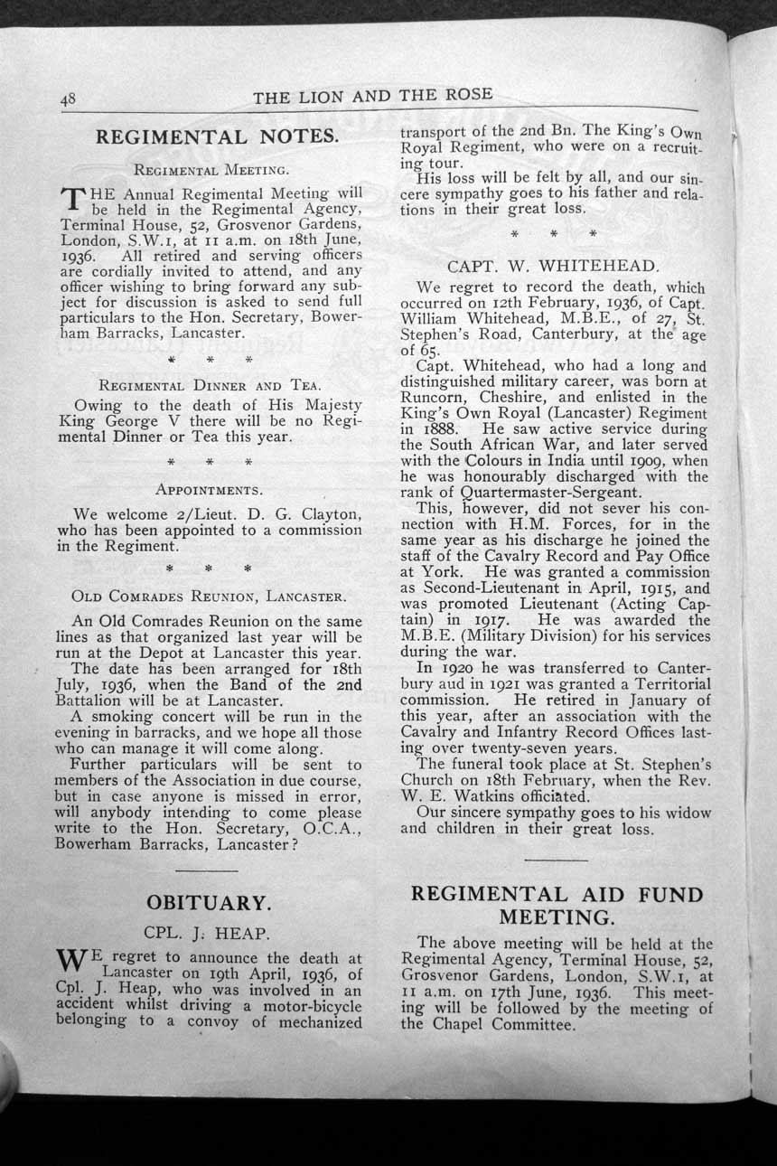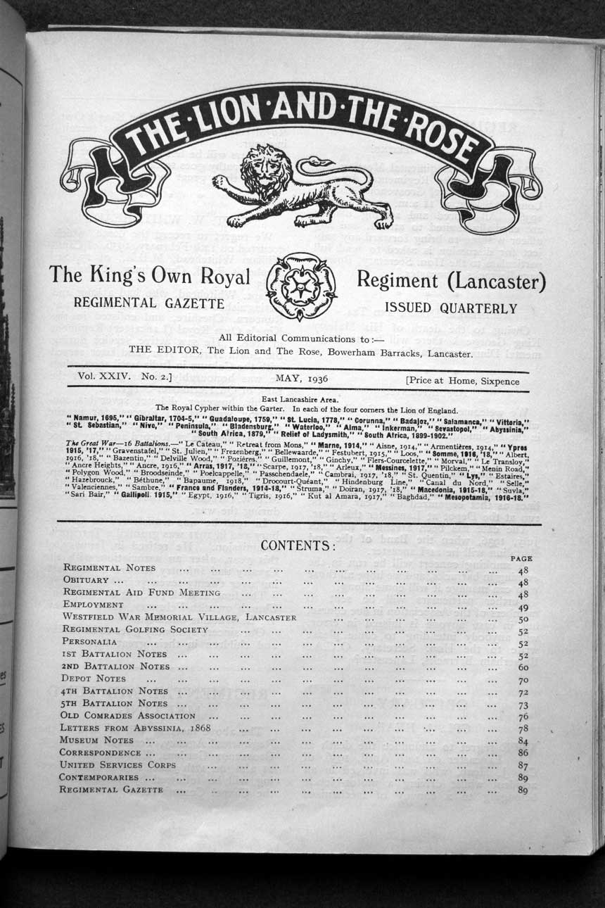 Collections - Publications The Lion and The Rose, The Regimental Journal Volume 24 - Number 2 - 1936