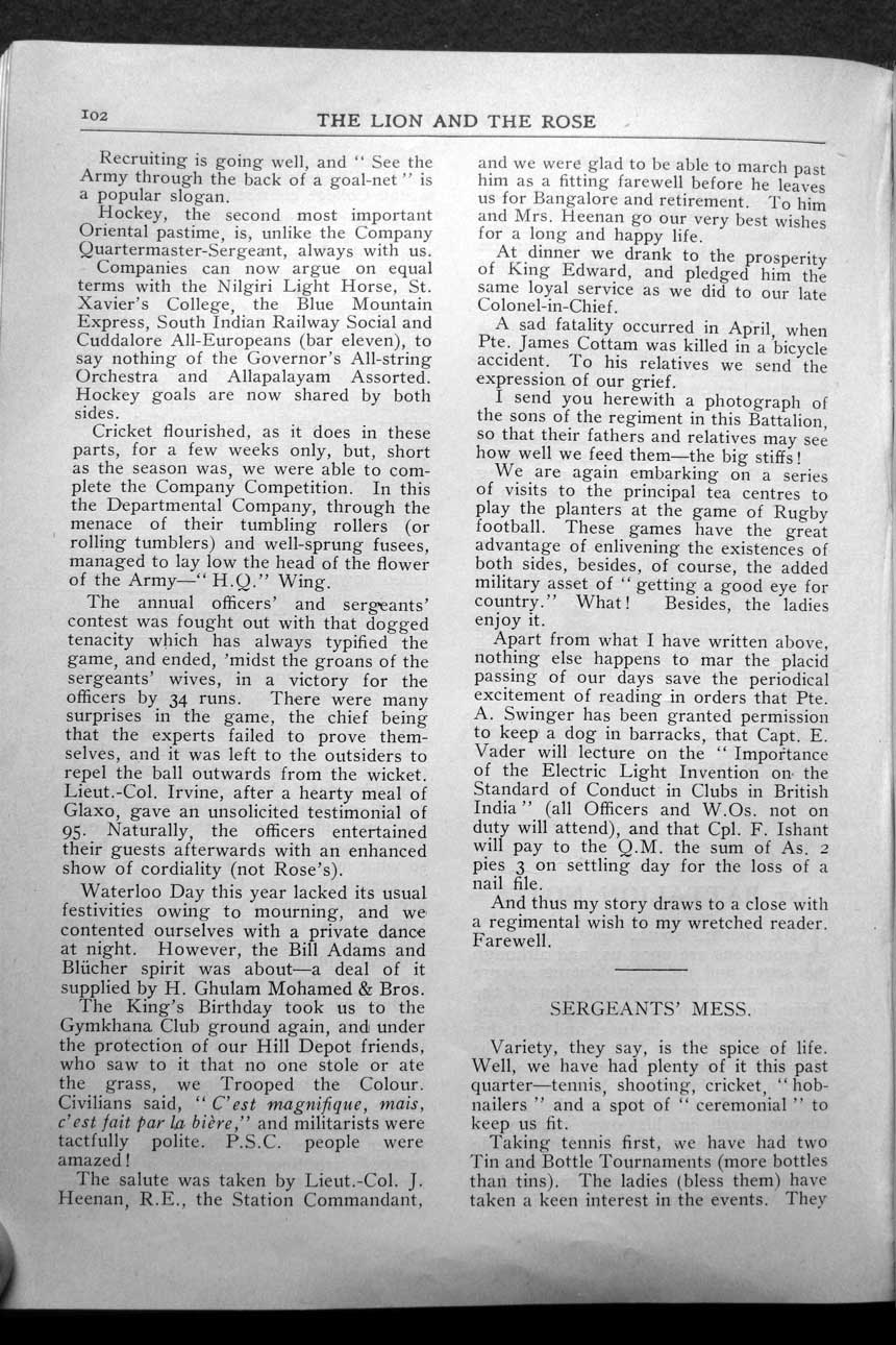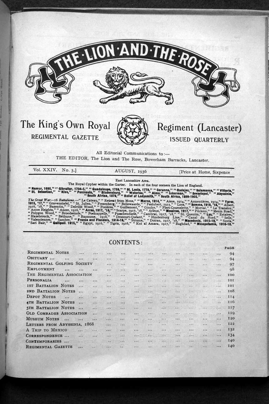Collections - Publications The Lion and The Rose, The Regimental Journal Volume 24 - Number 3 - 1936