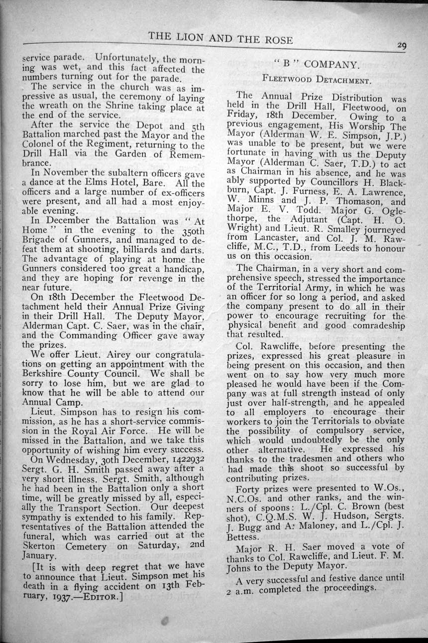 Collections - Publications The Lion and The Rose, The Regimental Journal Volume 25 - Number 1 - February 1937