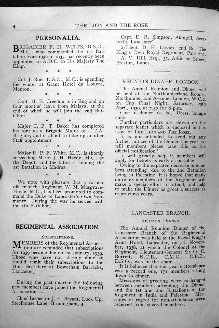 Collections - Publications The Lion and The Rose, The Regimental Journal Volume 27 - Number 1 - February 1939