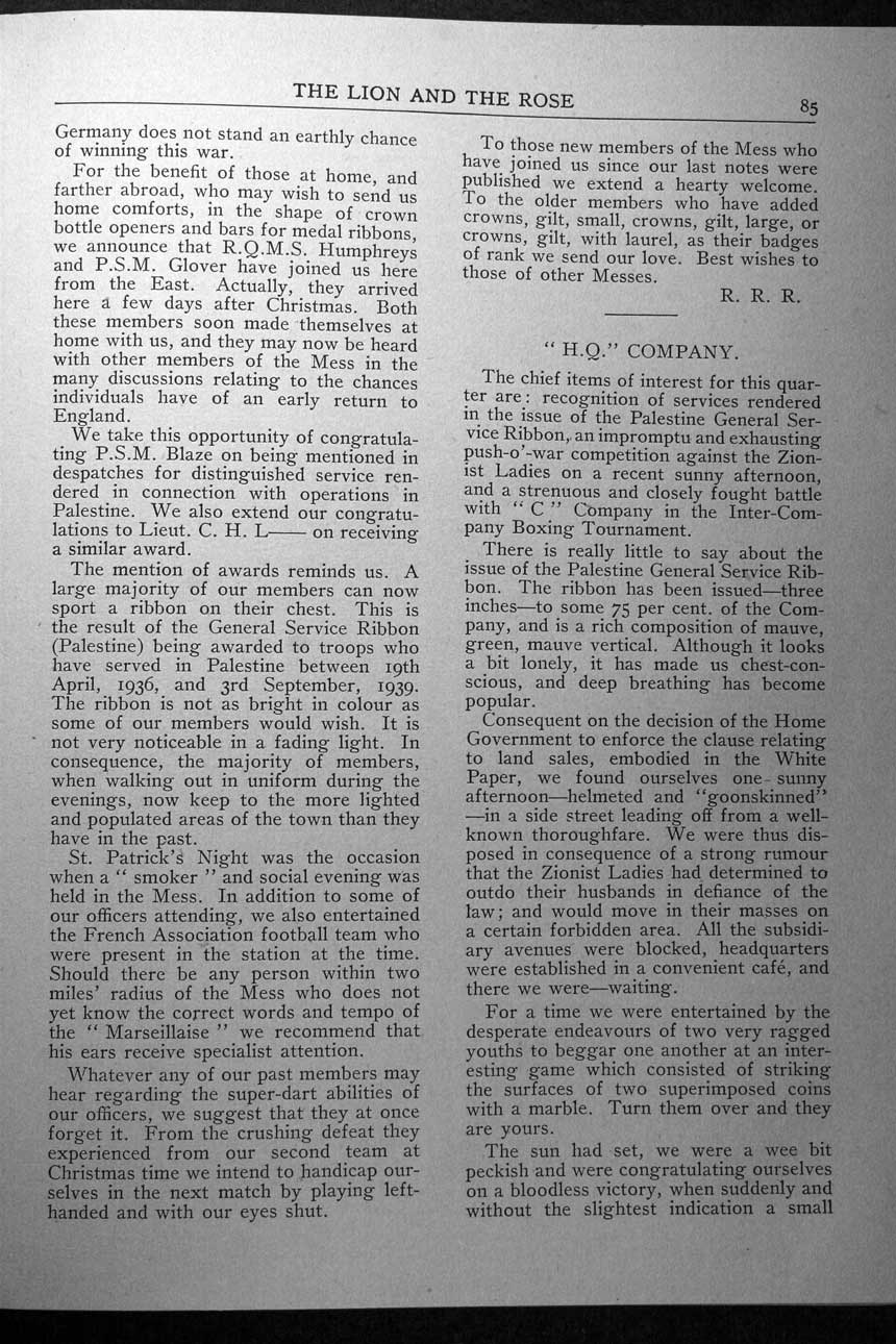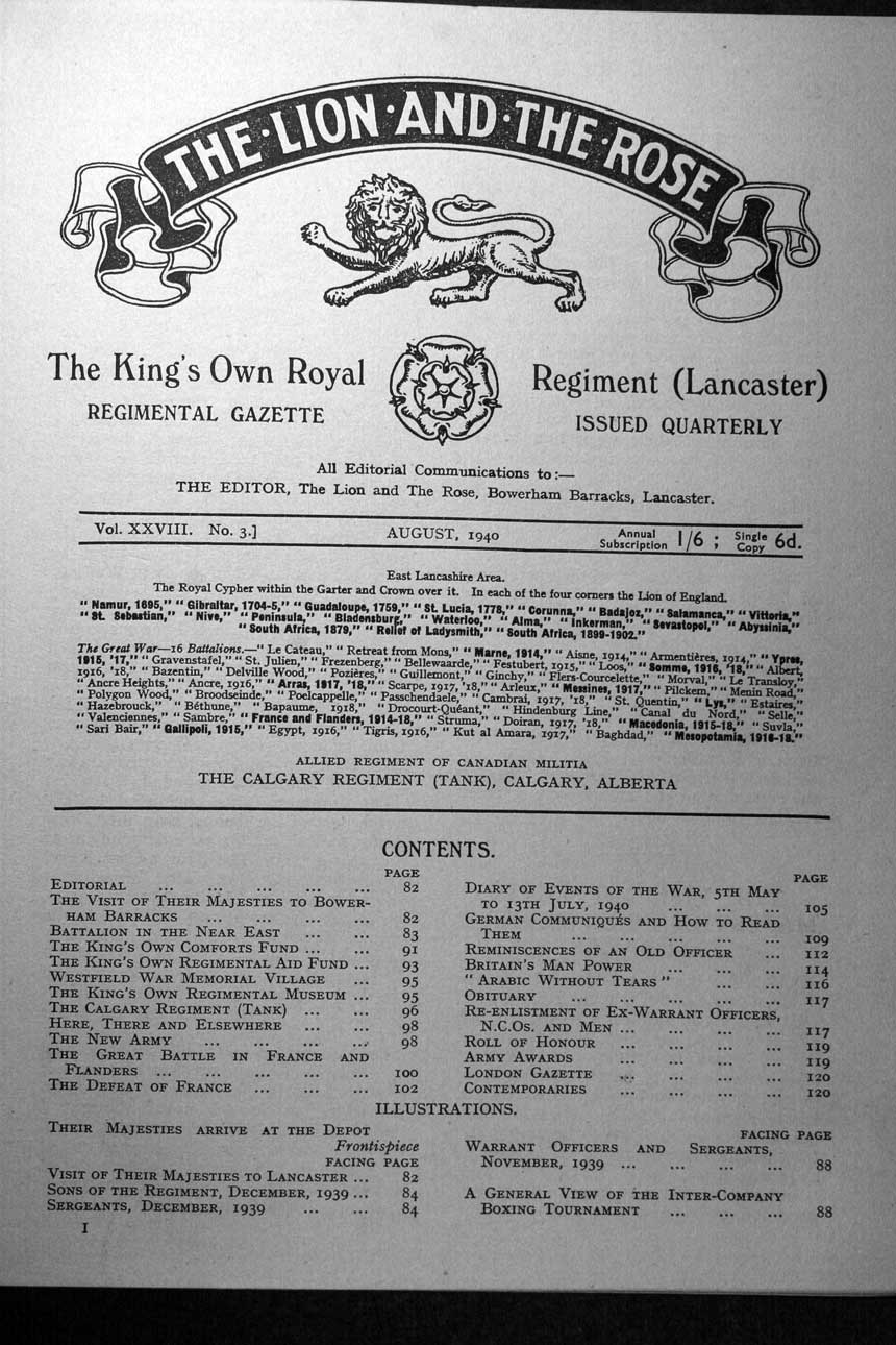 Collections - Publications The Lion and The Rose, The Regimental Journal Volume 28 - Number 3 - August 1940