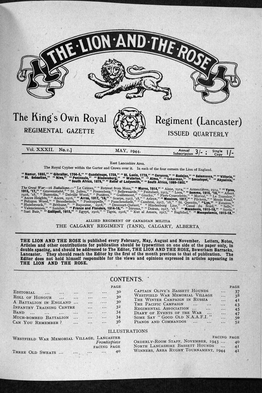 Collections - Publications The Lion and The Rose, The Regimental Journal Volume 32 - Number 2 - May 1944