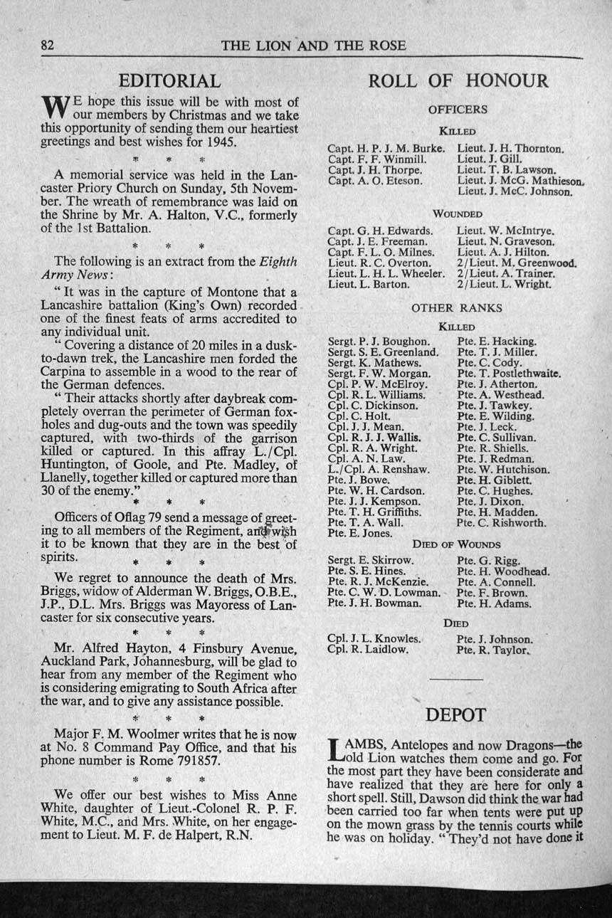 Collections - Publications The Lion and The Rose, The Regimental Journal Volume 32 - Number 4 - November 1944