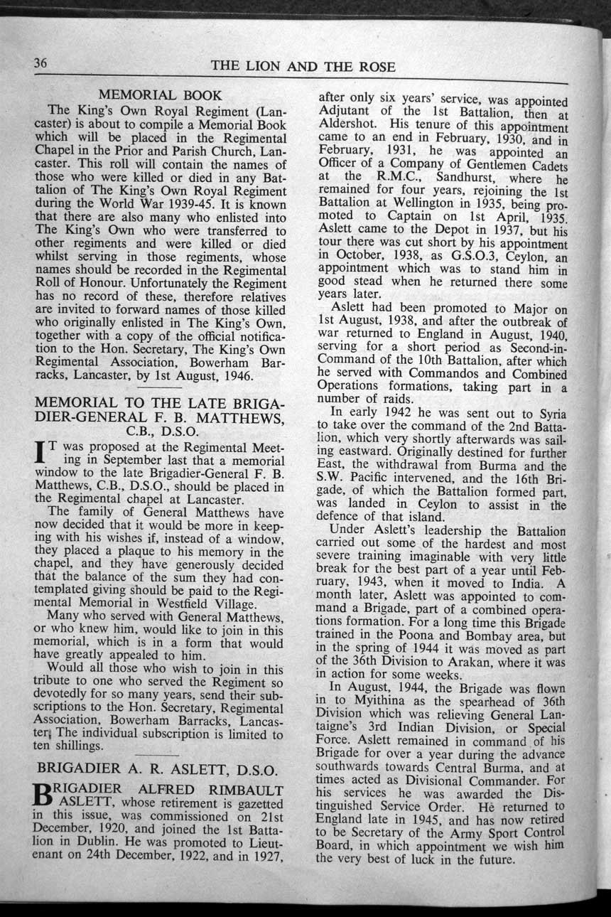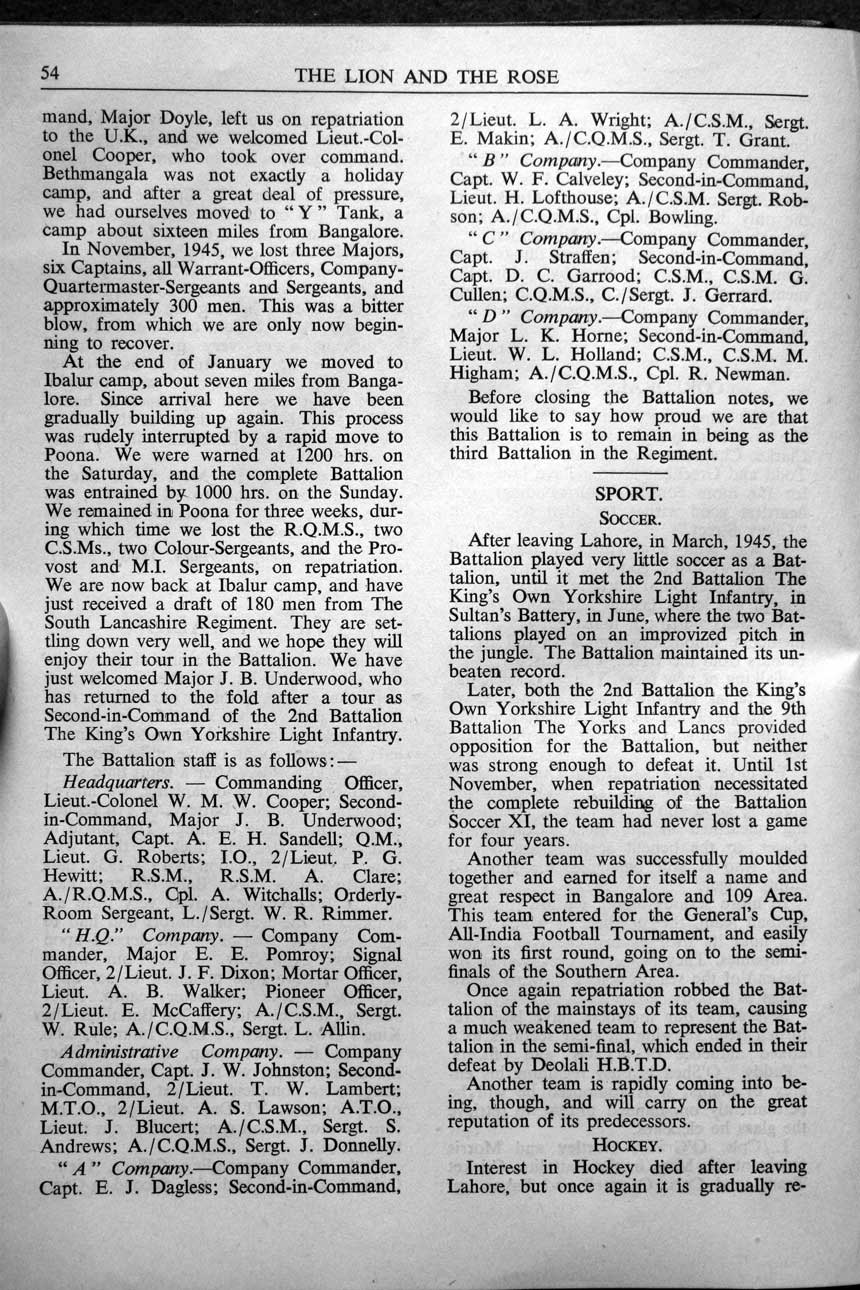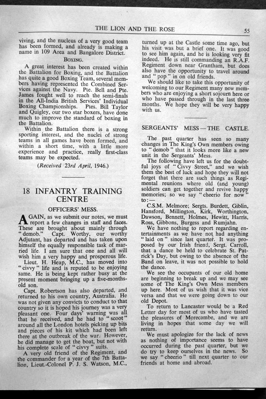 Collections - Publications The Lion and The Rose, The Regimental Journal Volume XXXIV - Number 2 - Summer 1946