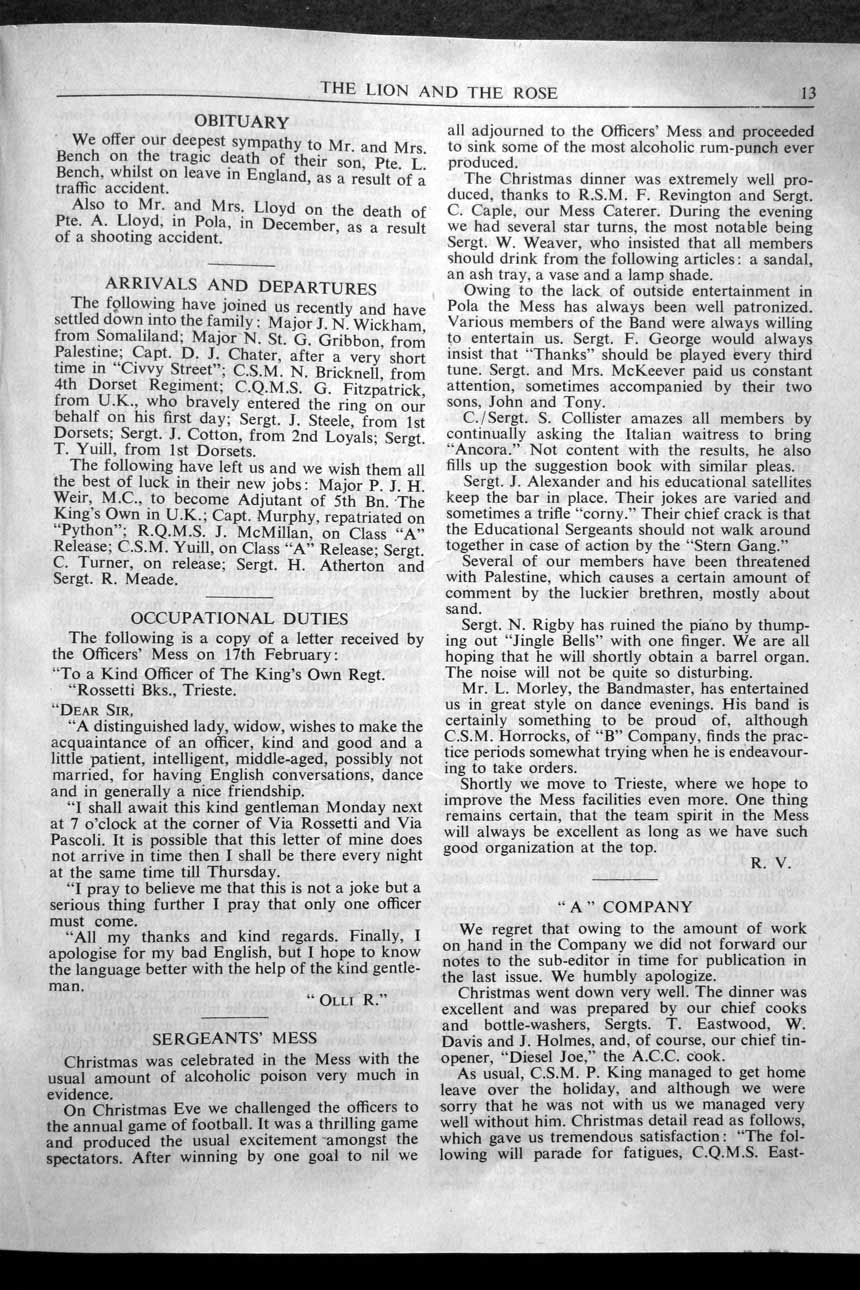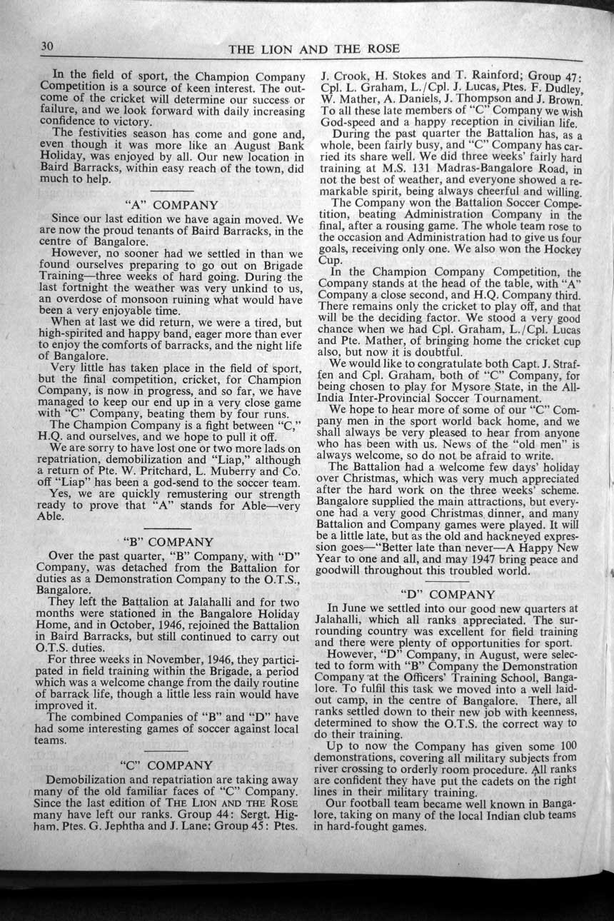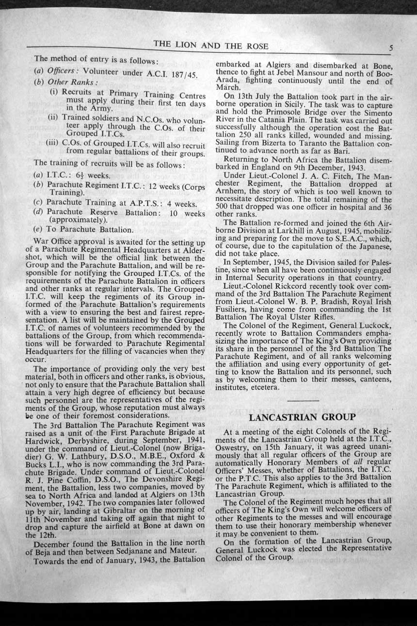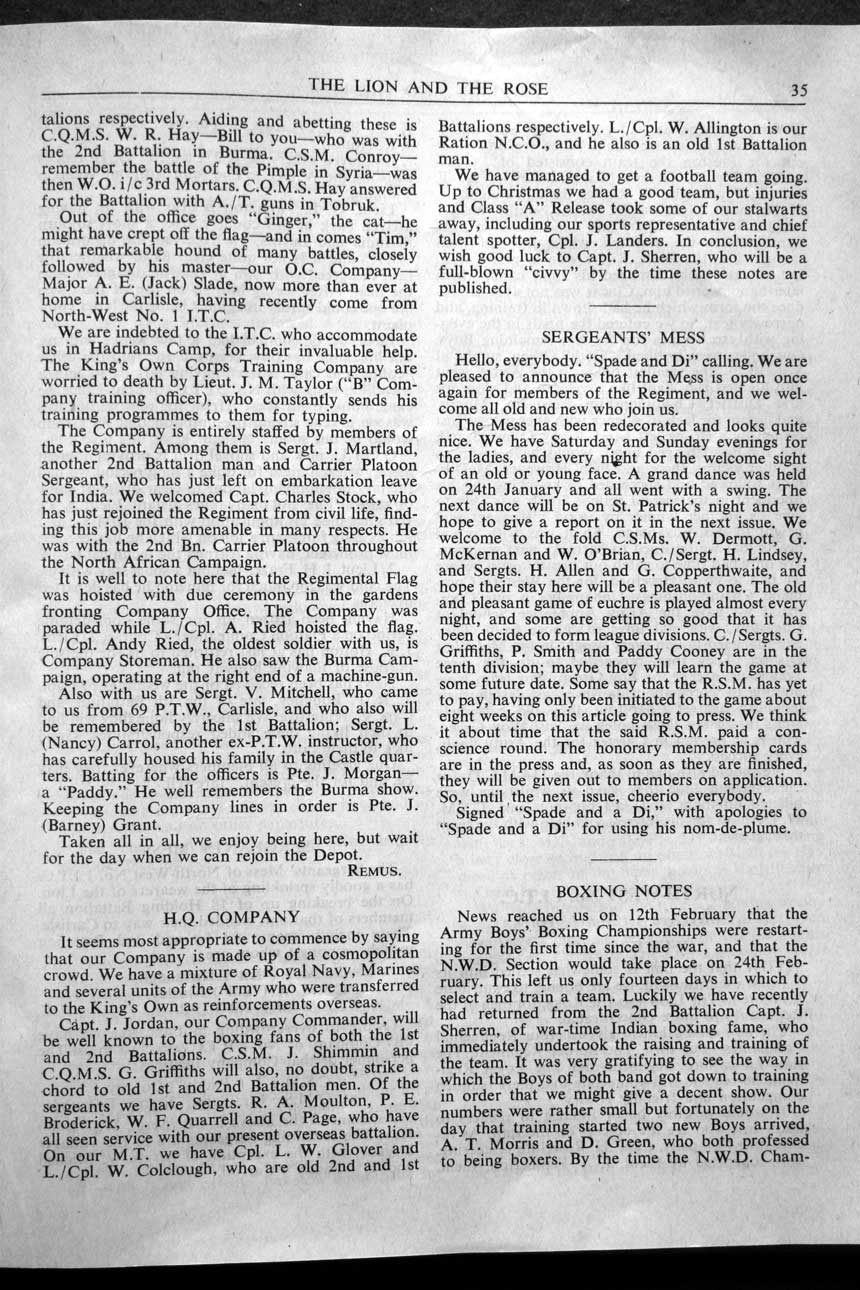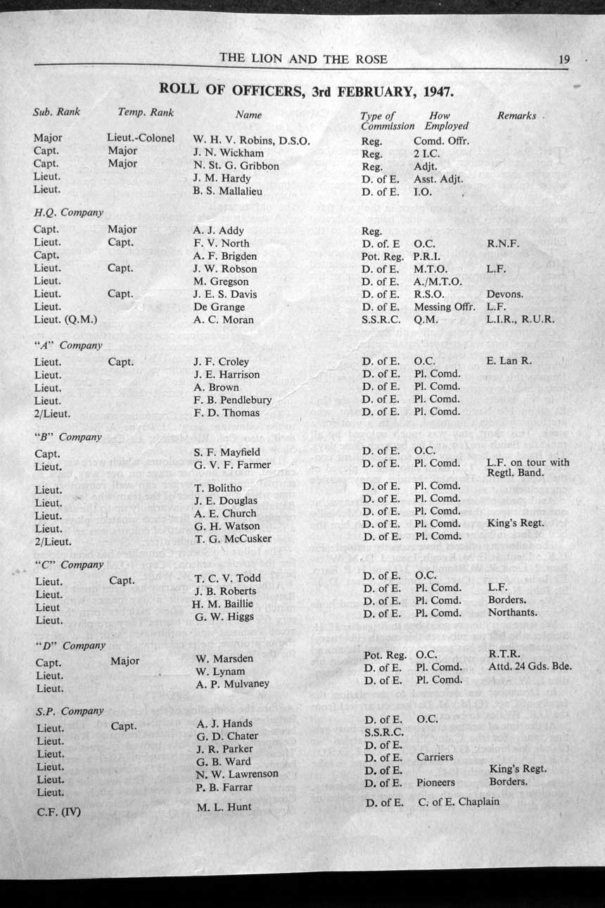 Collections - Publications The Lion and The Rose, The Regimental Journal Volume XXXV - Number 1 - Spring 1947