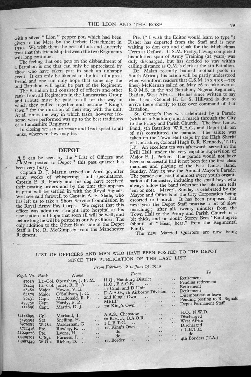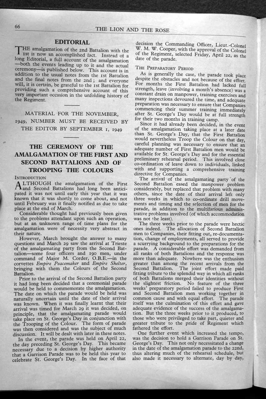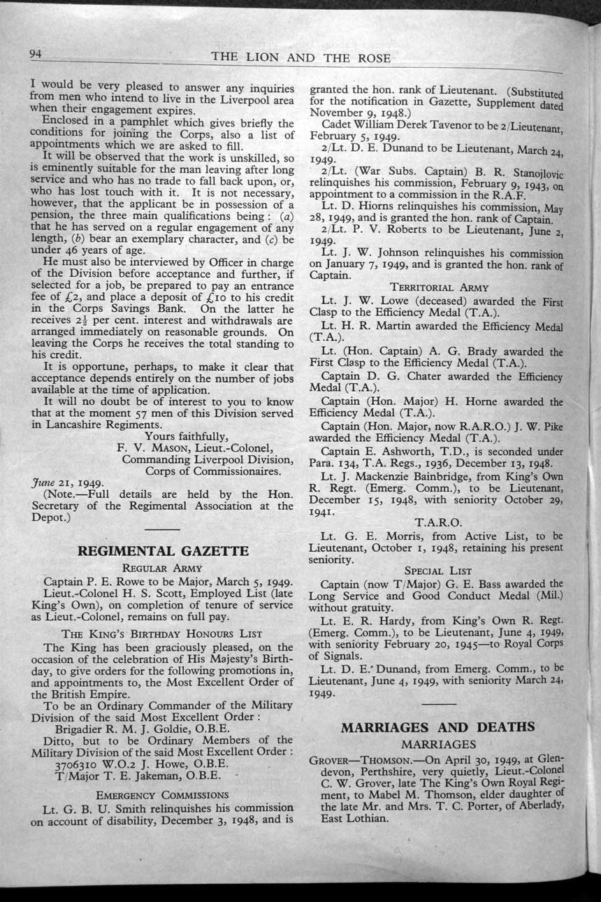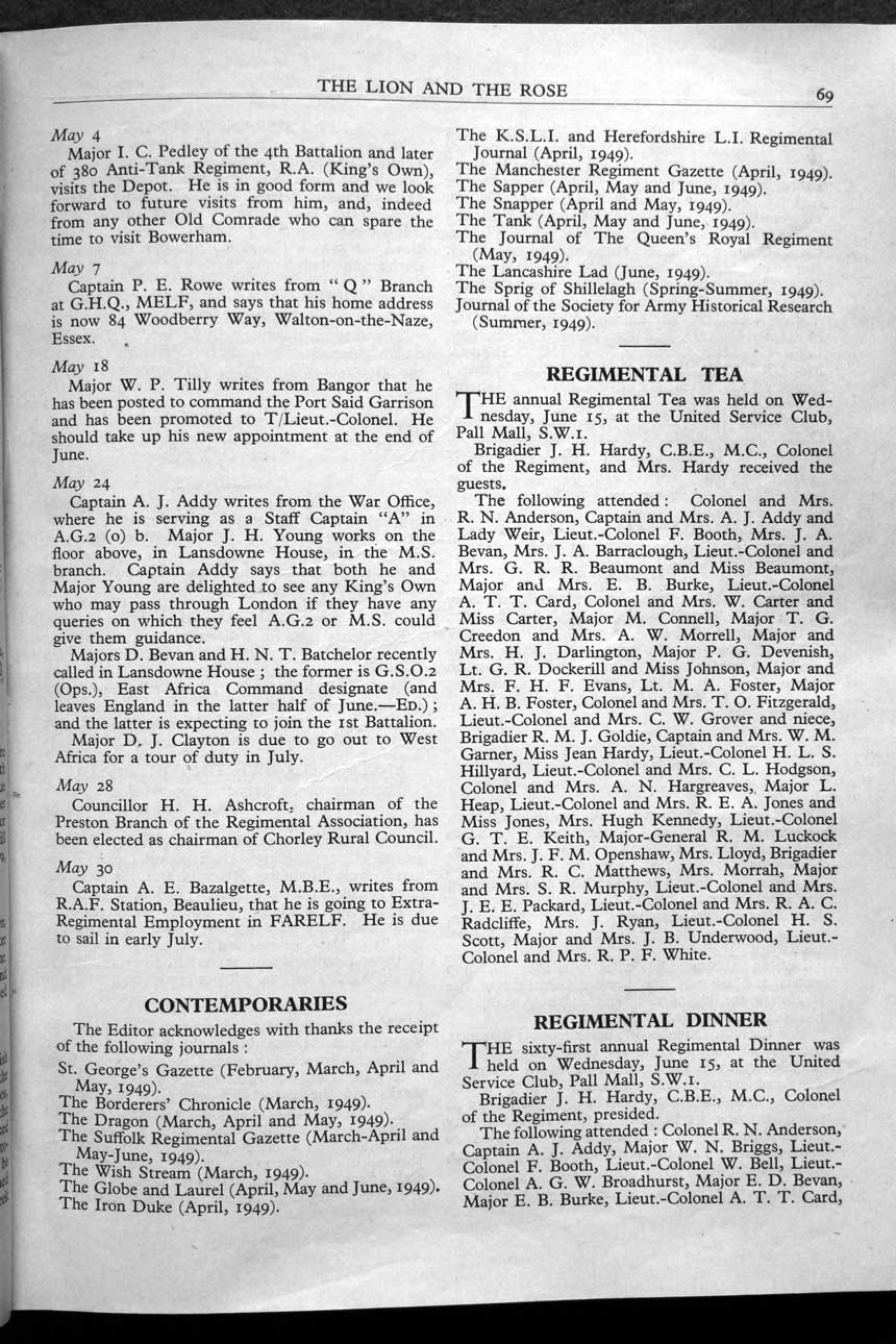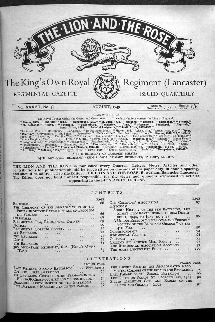 Collections - Publications The Lion and The Rose, The Regimental Journal Volume XXXVII - Number 3 - August 1949