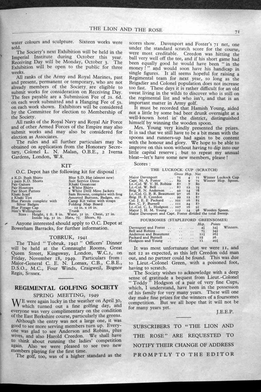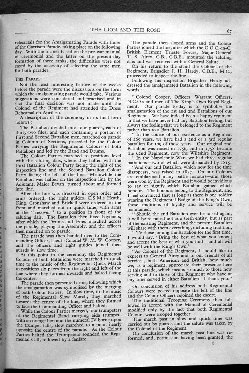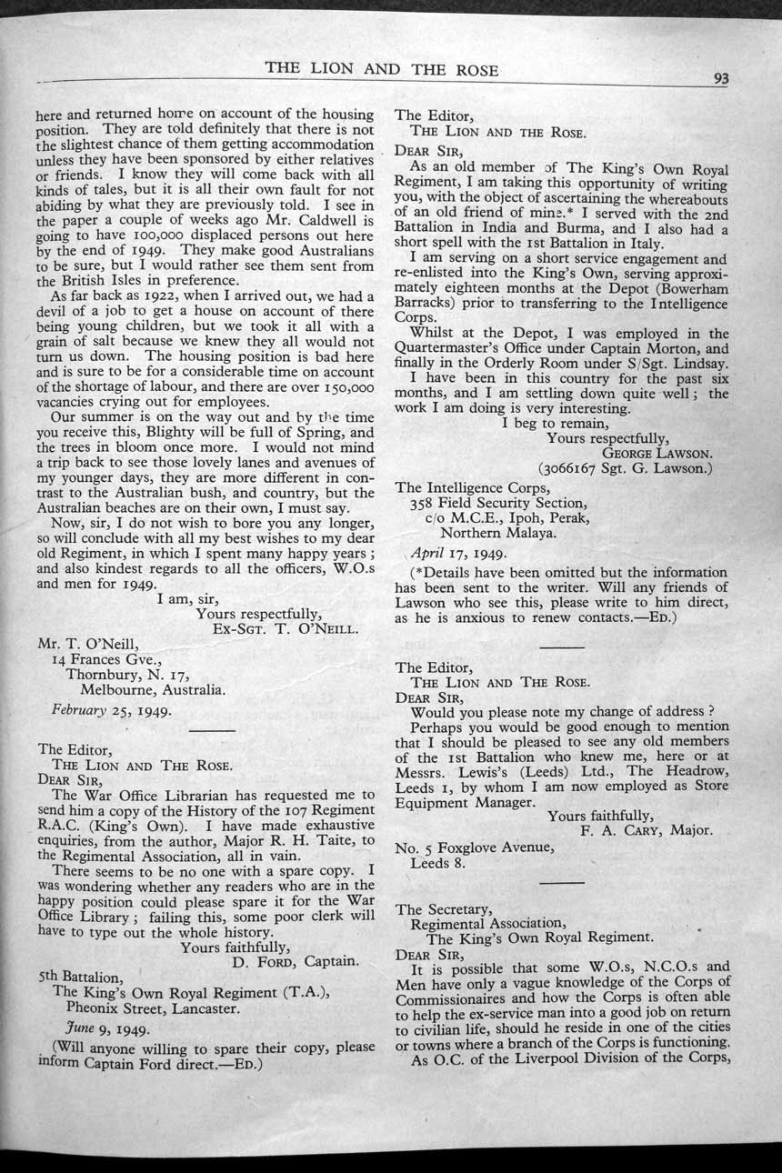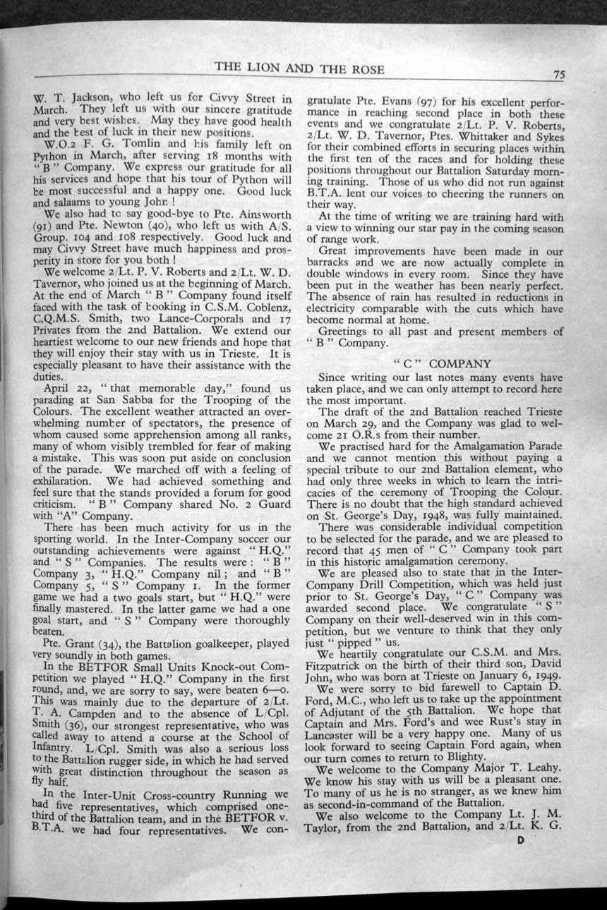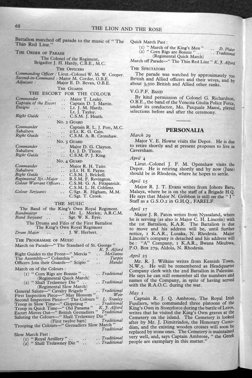 Collections - Publications The Lion and The Rose, The Regimental Journal Volume XXXVII - Number 3 - August 1949