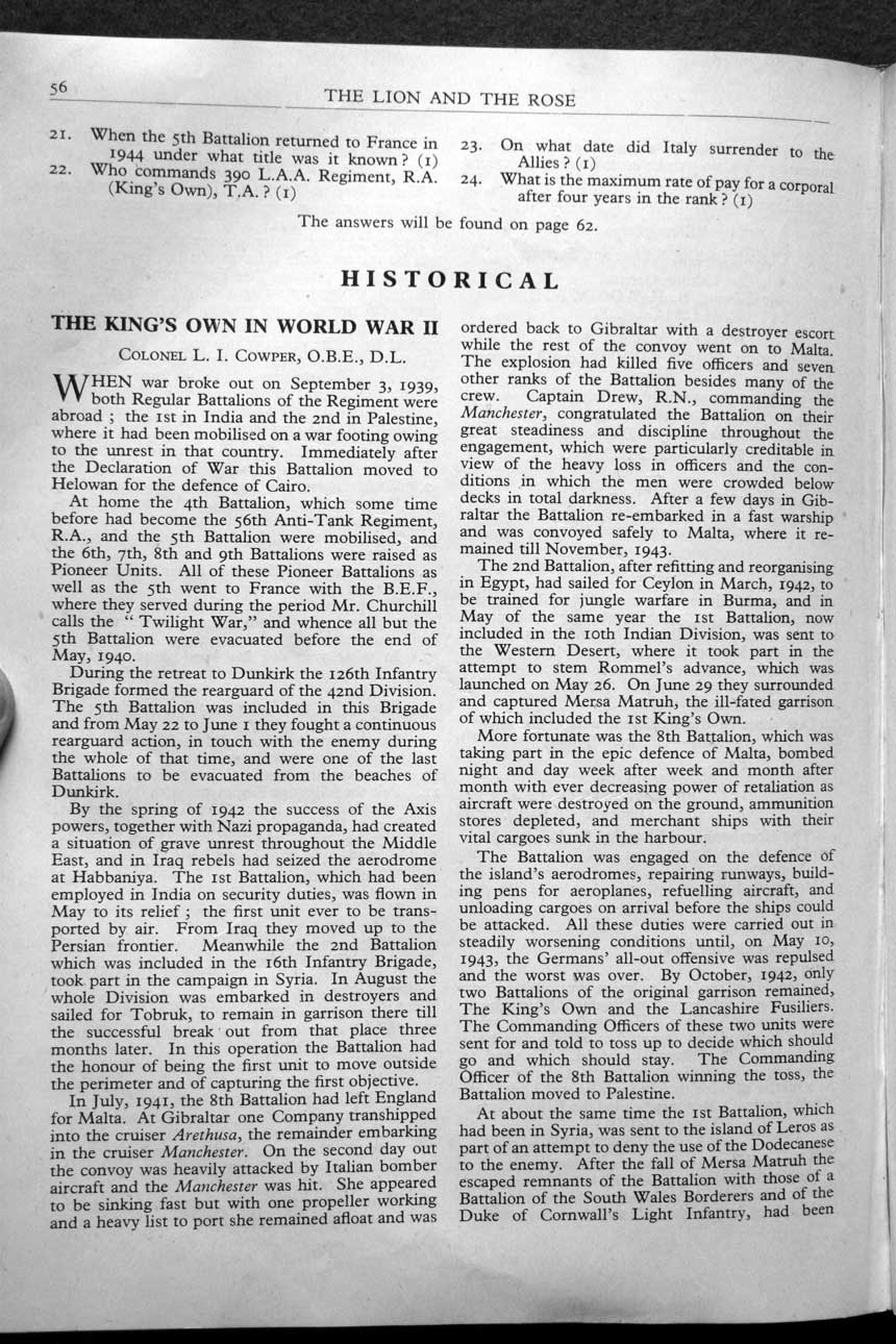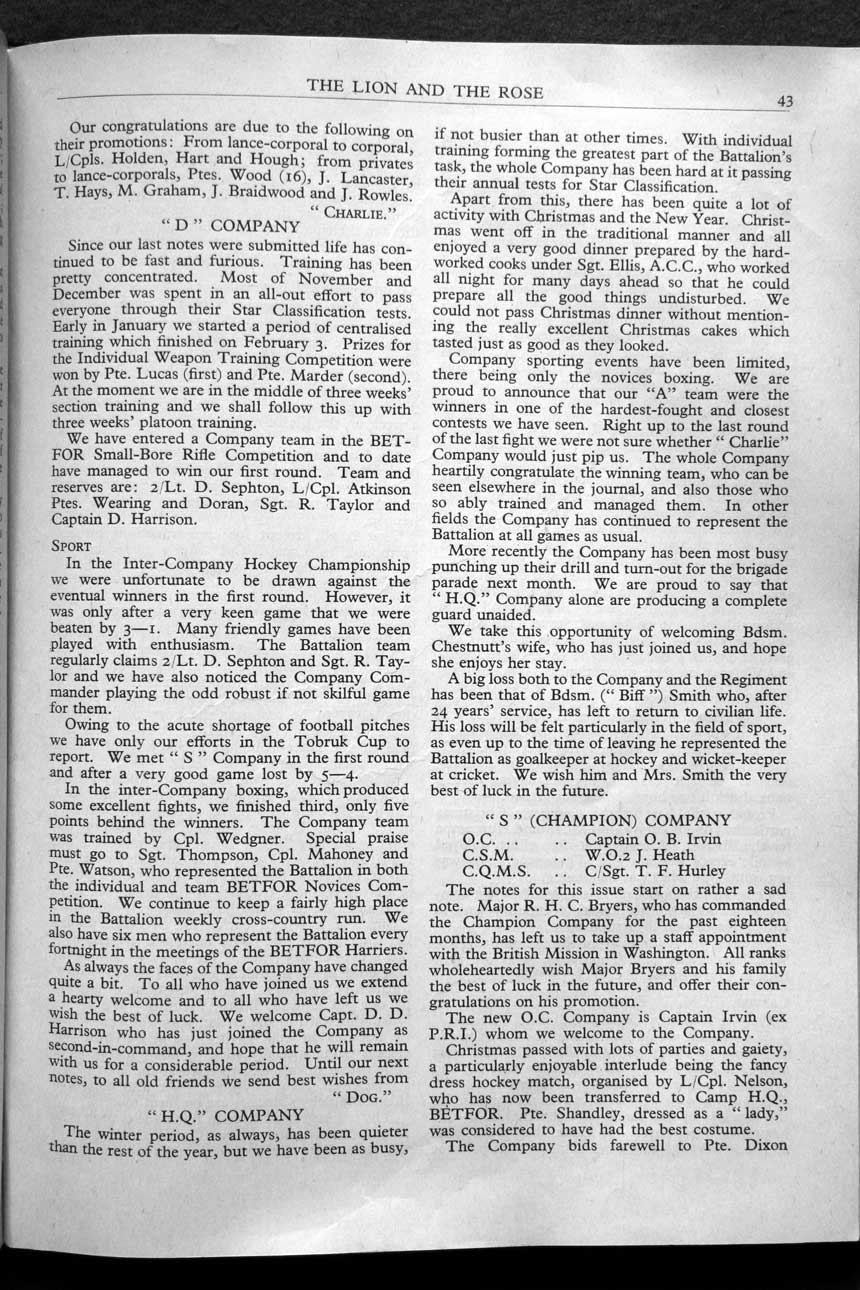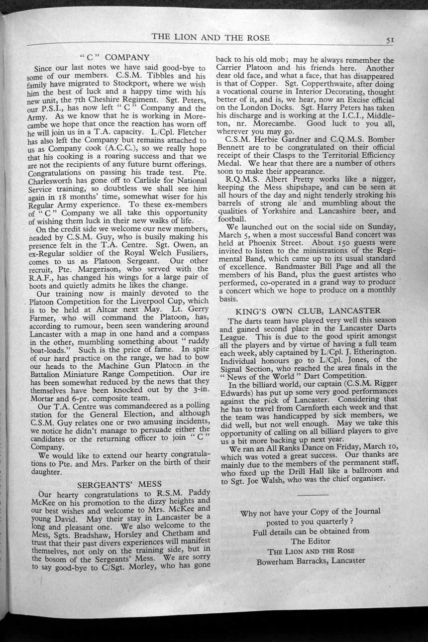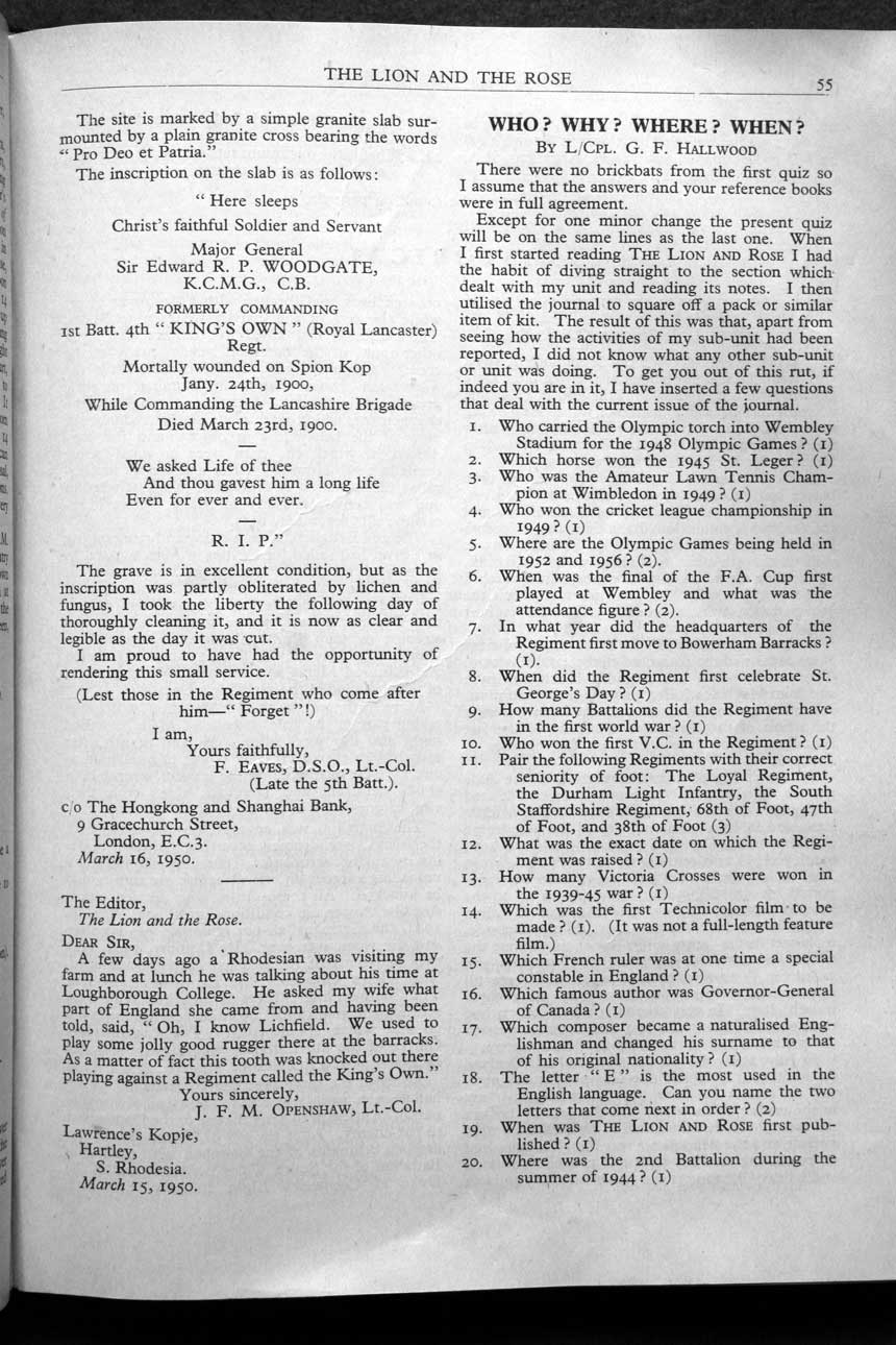 Collections - Publications The Lion and The Rose, The Regimental Journal Volume XXXVIII - Number 2 - May 1950