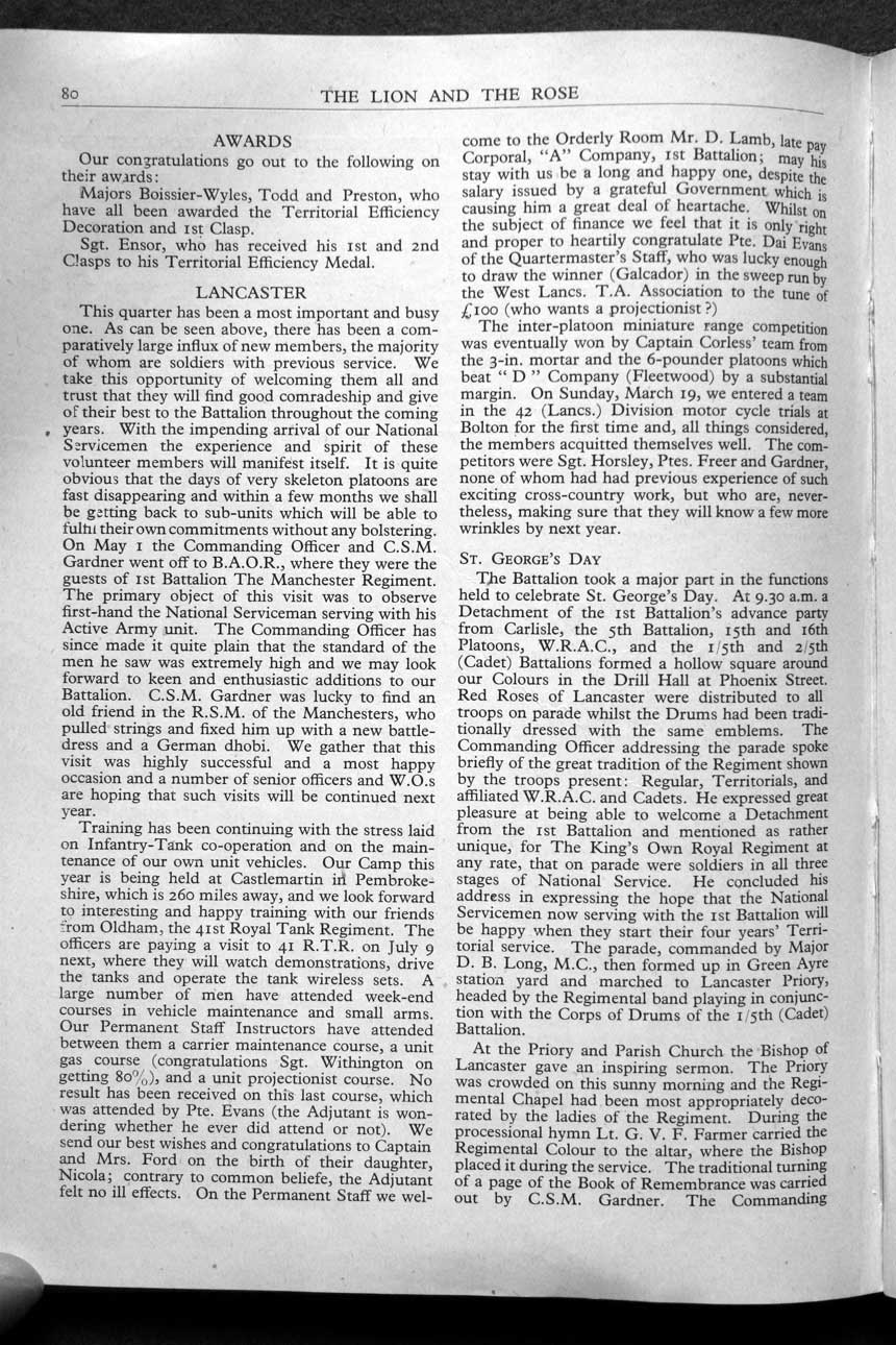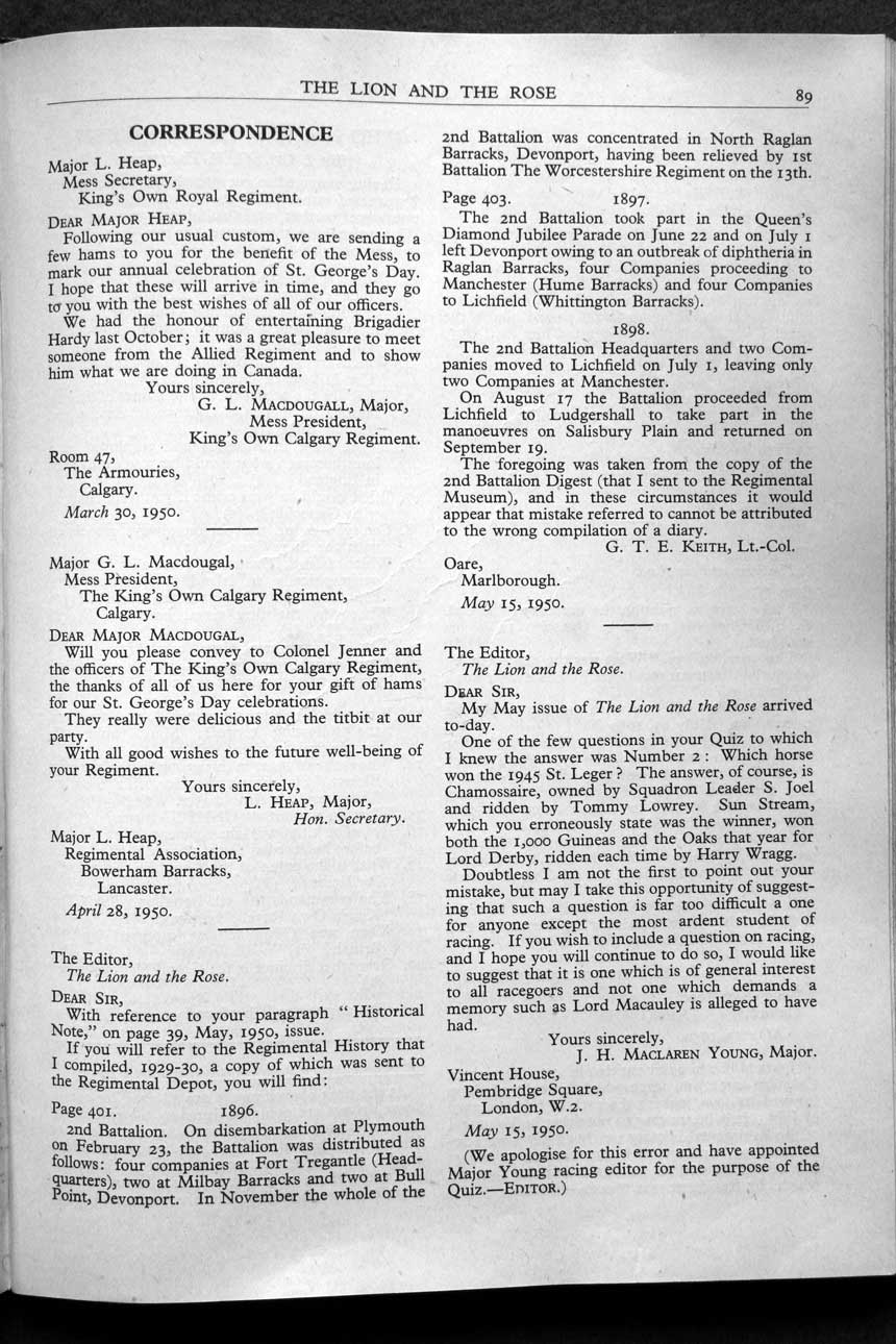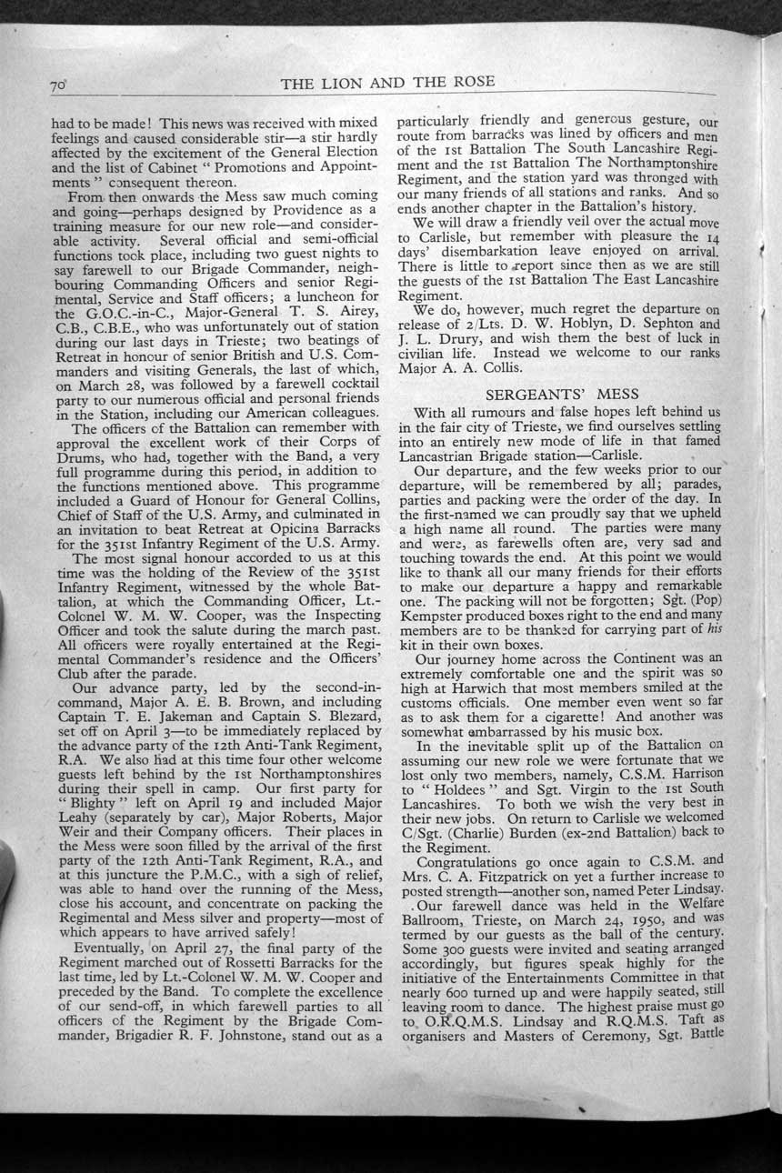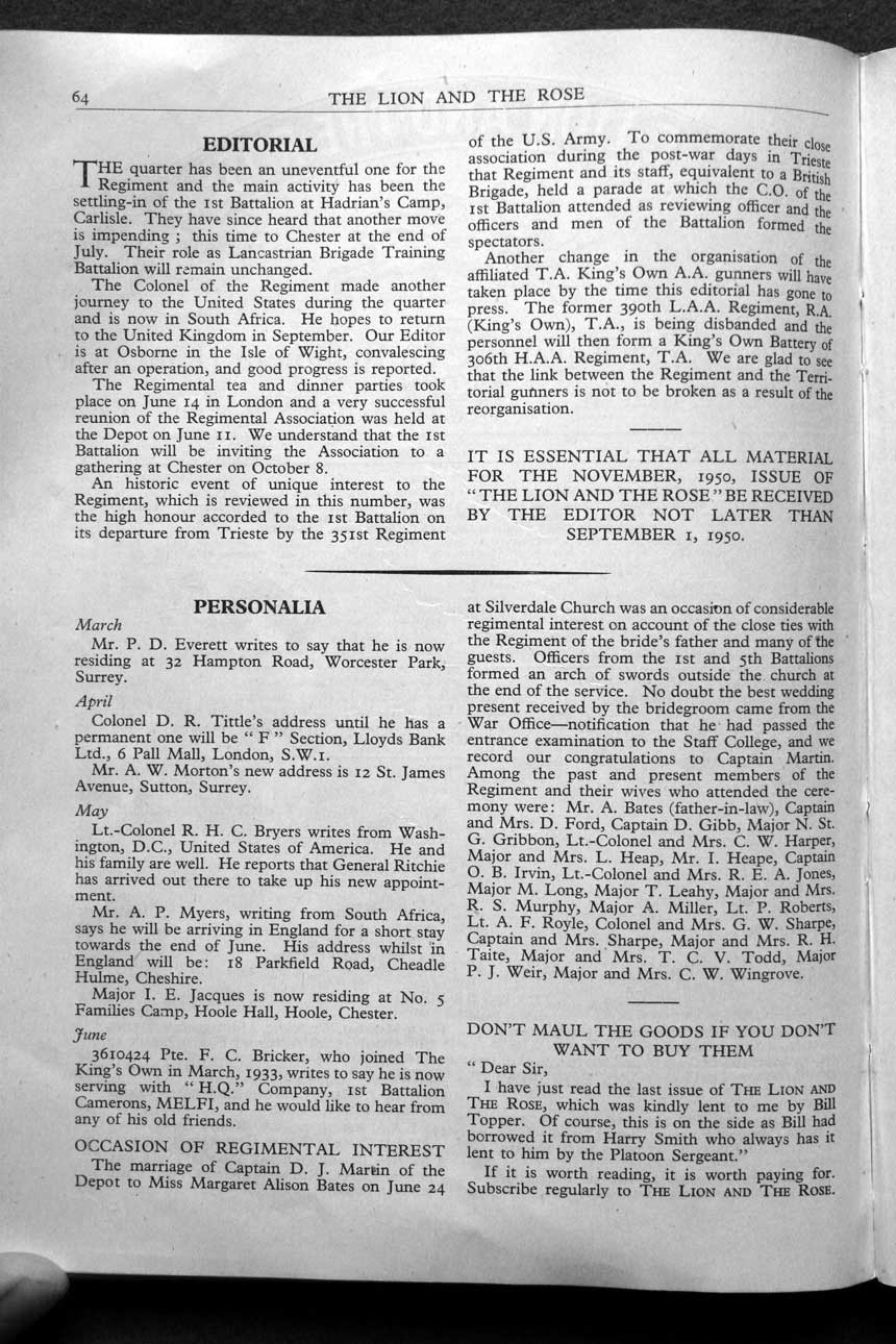 Collections - Publications The Lion and The Rose, The Regimental Journal Volume XXXVIII - Number 3 - August 1950