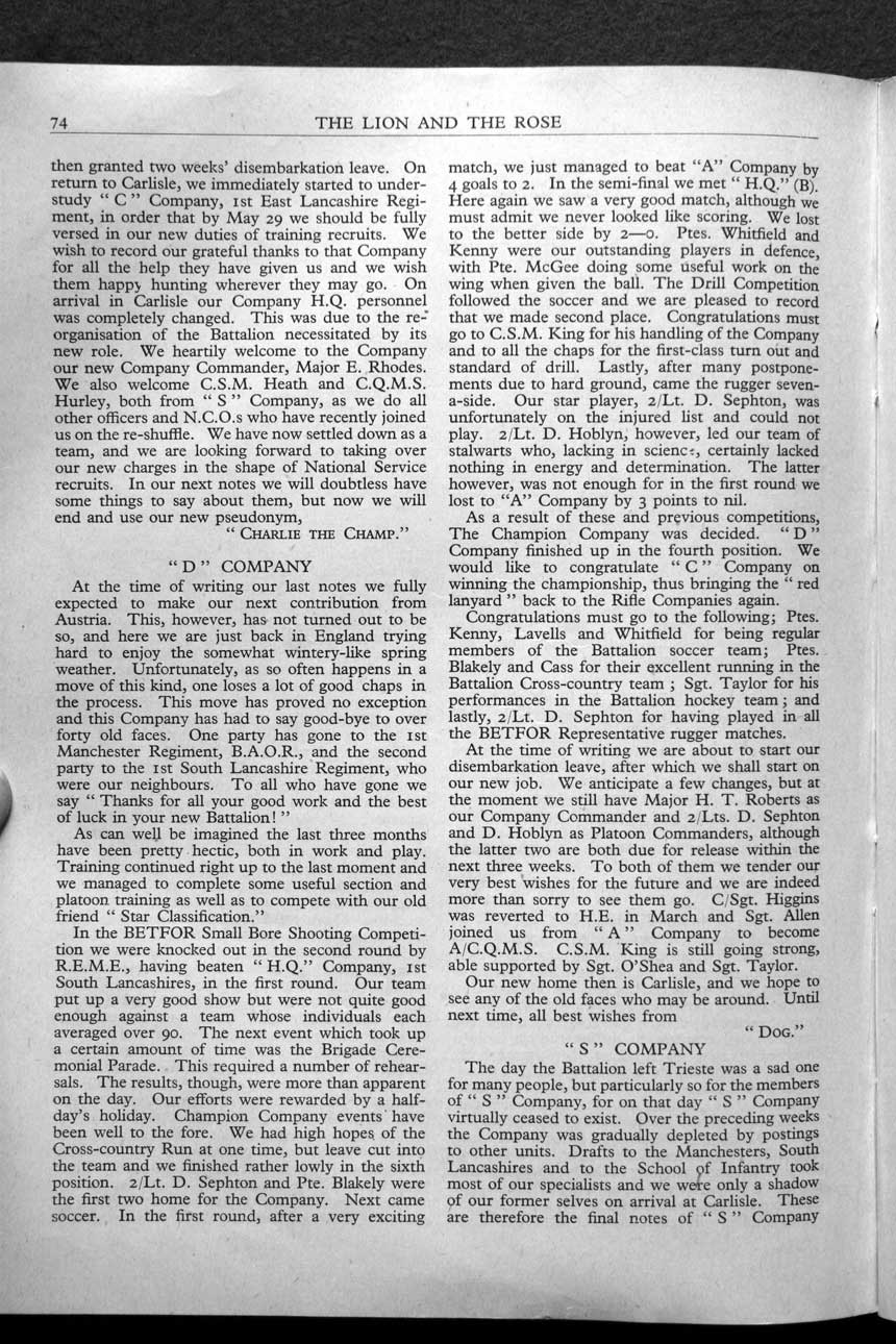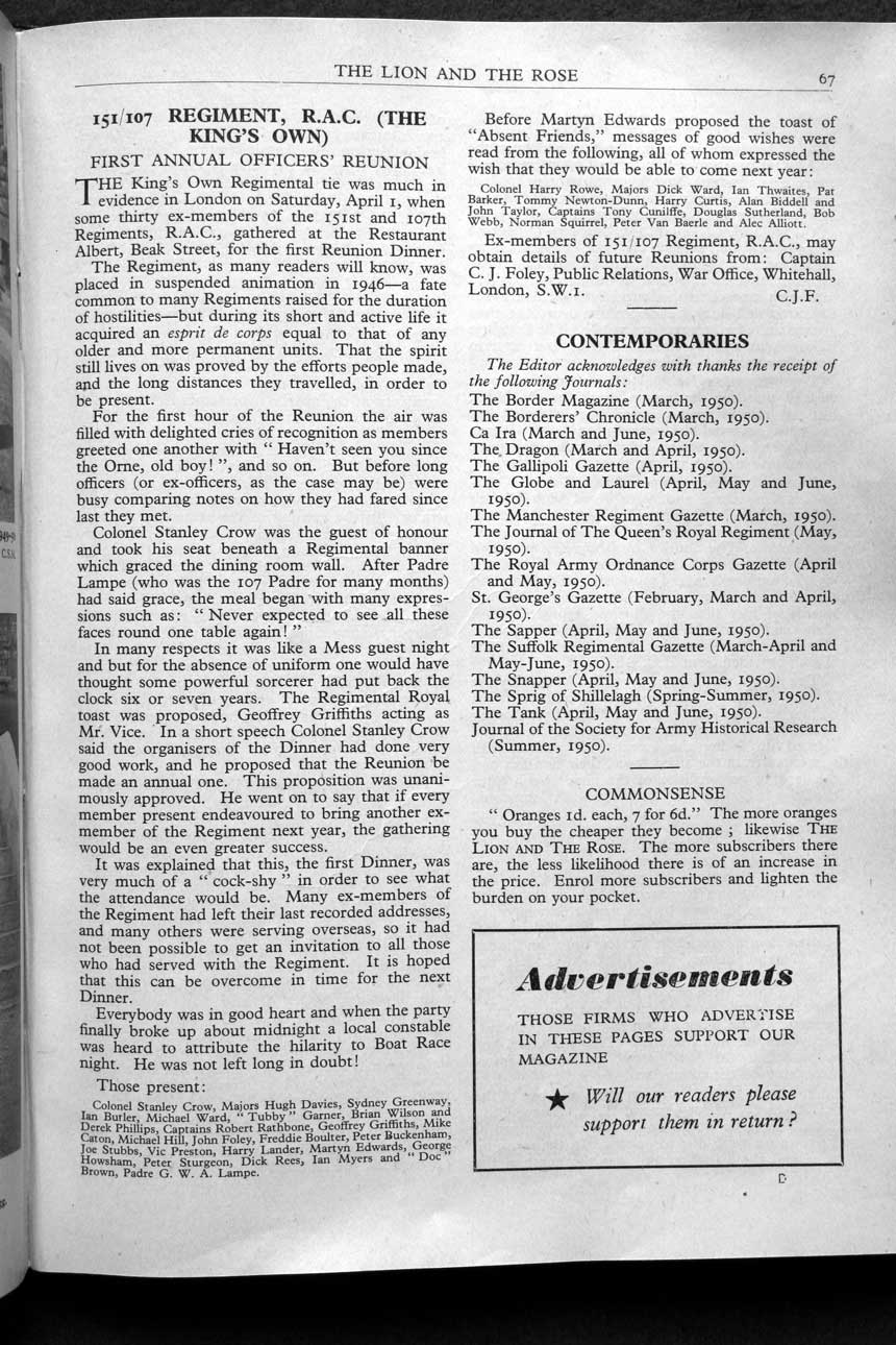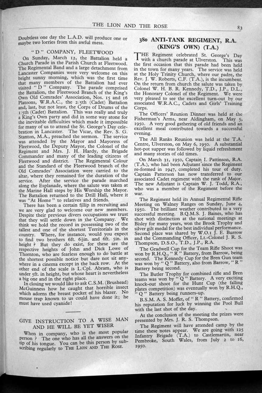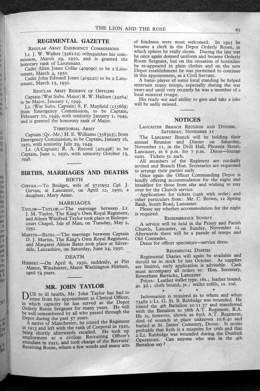 Collections - Publications The Lion and The Rose, The Regimental Journal Volume XXXVIII - Number 3 - August 1950
