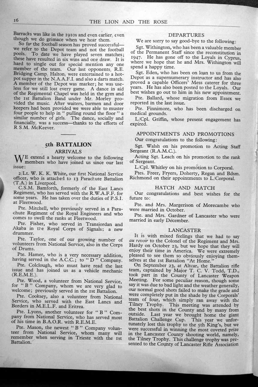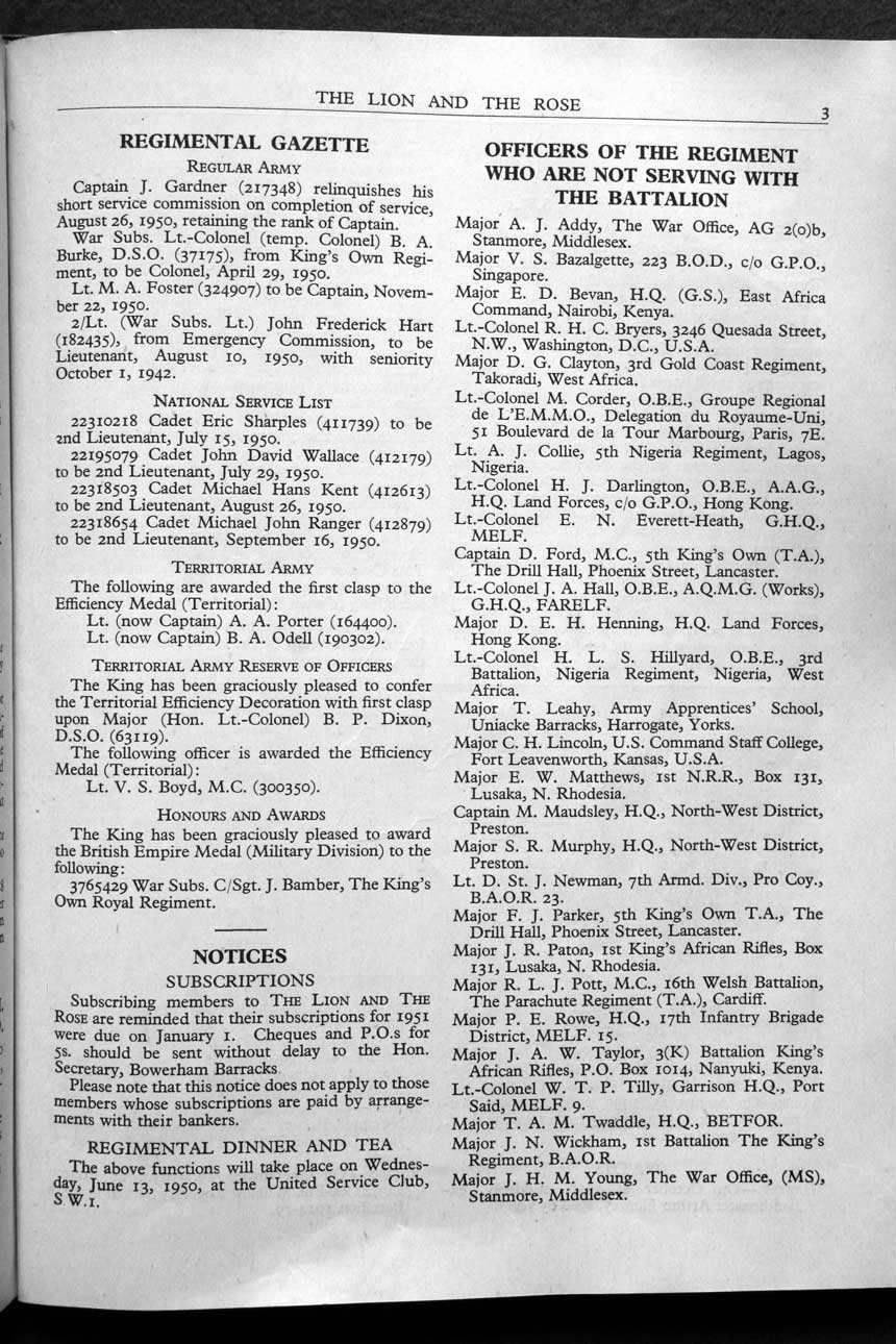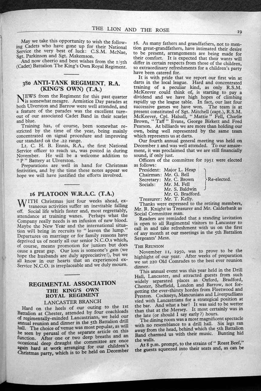 Collections - Publications The Lion and The Rose, The Regimental Journal Volume XXXIX - Number 1 - February 1951