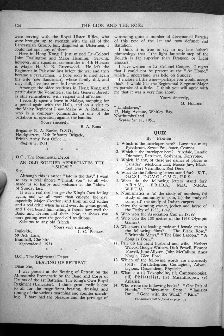 Collections - Publications The Lion and The Rose, The Regimental Journal Volume XXXIX - Number 4 - November 1951