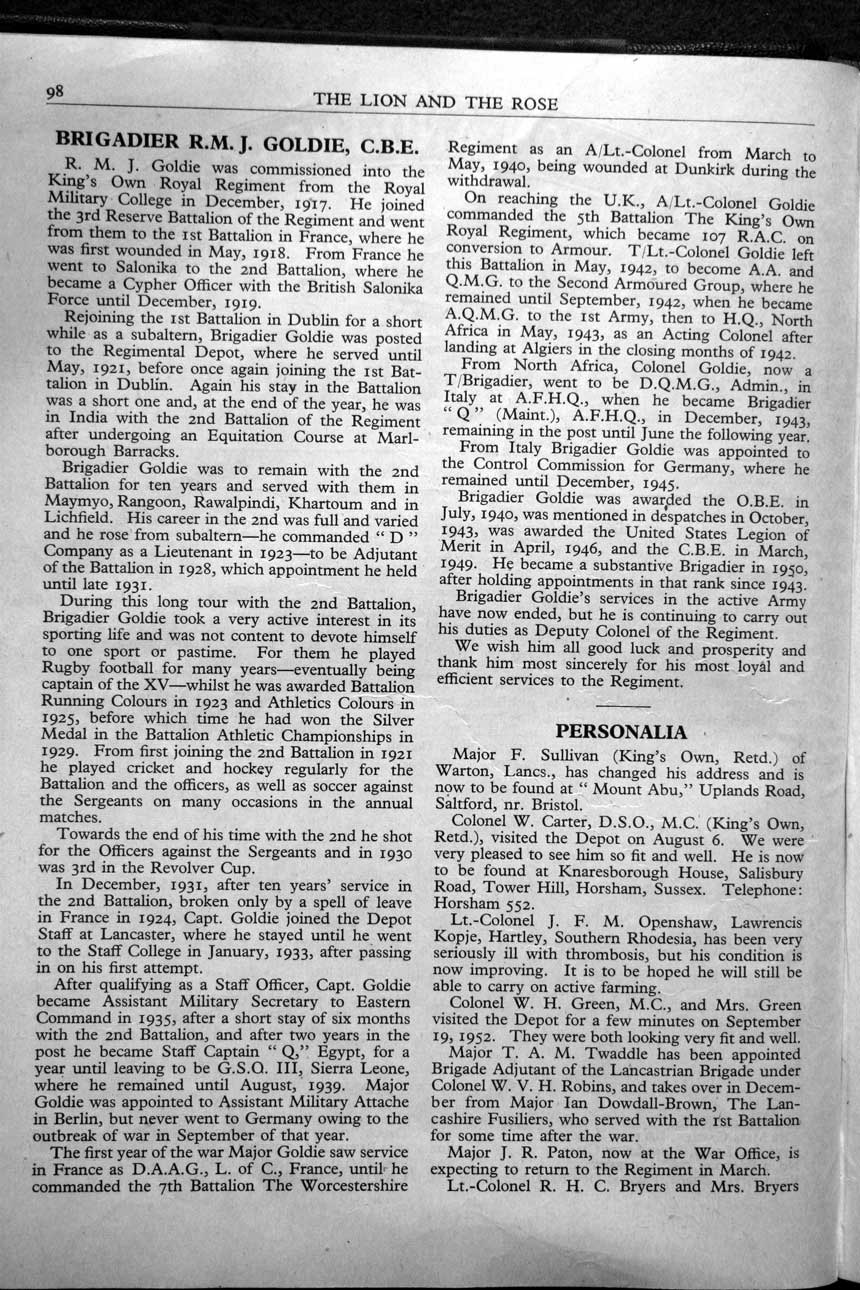 Collections - Publications The Lion and The Rose, The Regimental Journal Volume XL - Number 4 - November 1952