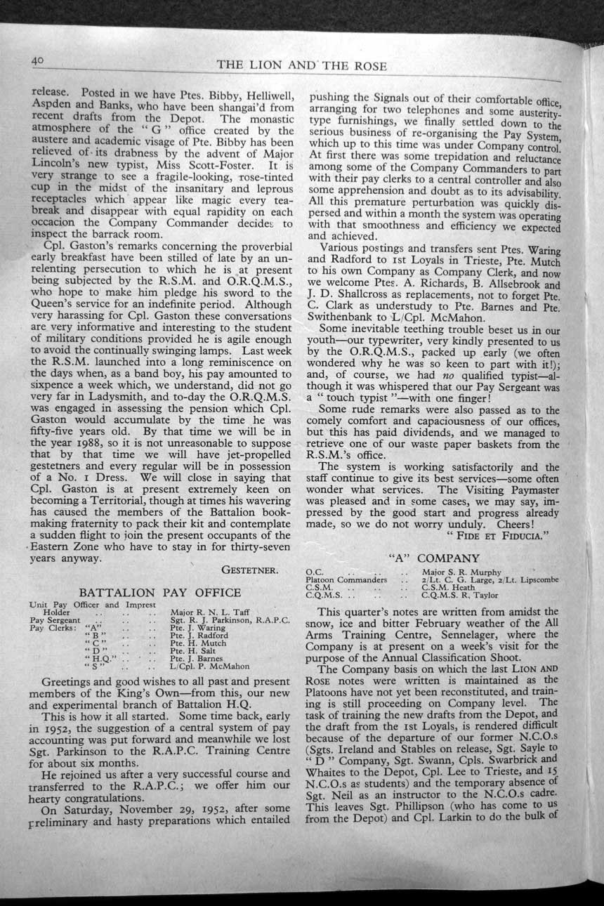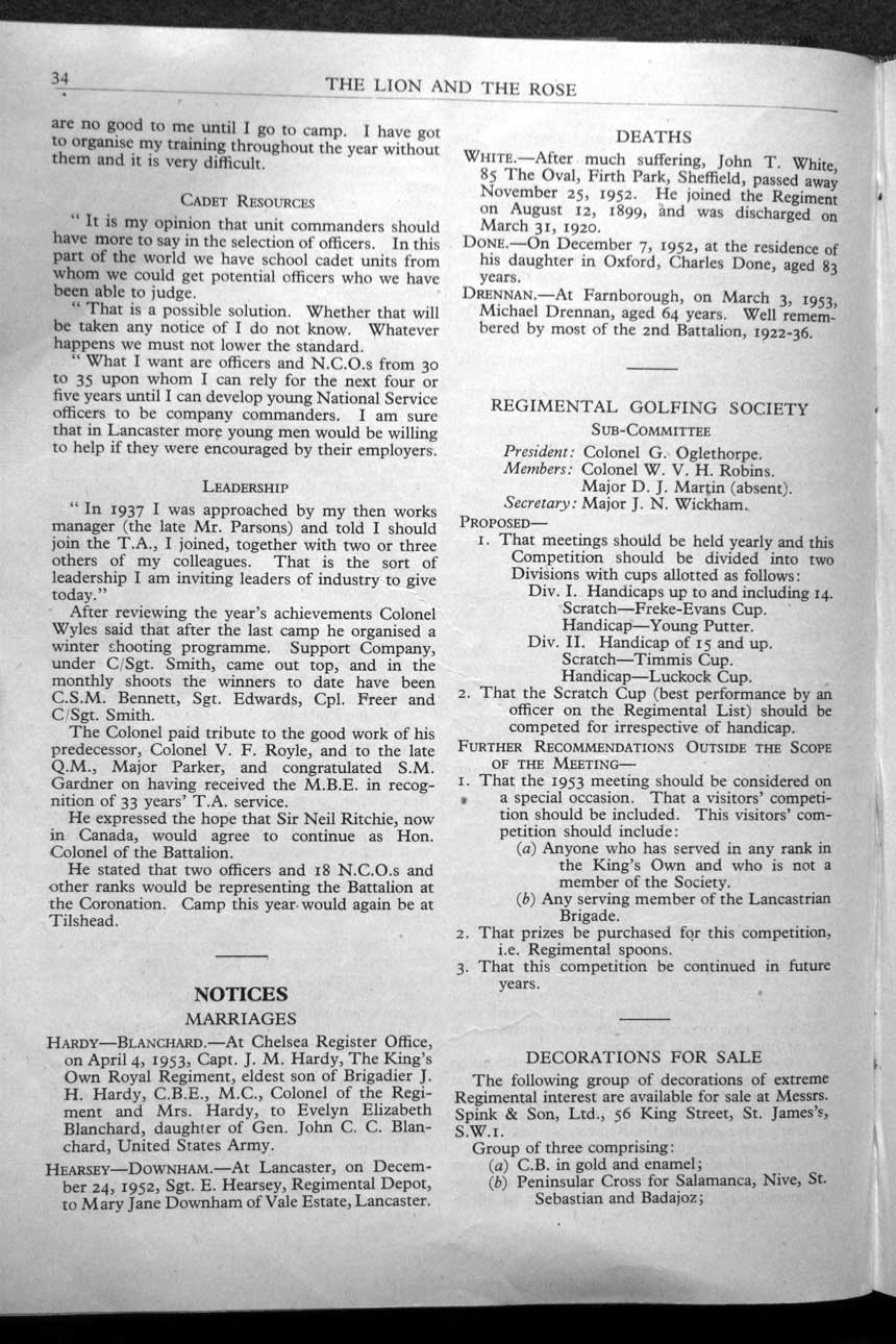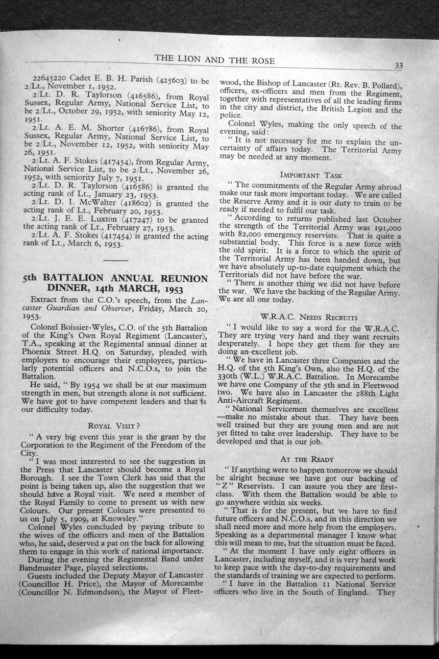 Collections - Publications The Lion and The Rose, The Regimental Journal Volume XLI - Number 2 - May 1953
