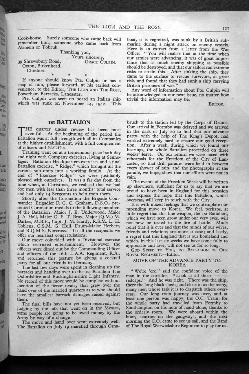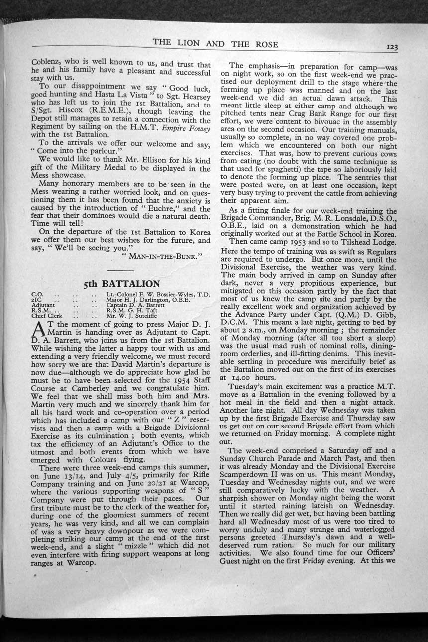 Collections - Publications The Lion and The Rose, The Regimental Journal Volume XLI - Number 4 - November 1953