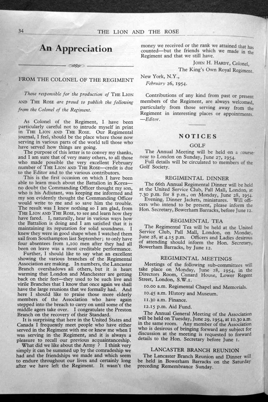 Collections - Publications The Lion and The Rose, The Regimental Journal Volume XLII - Number 2 - May 1954
