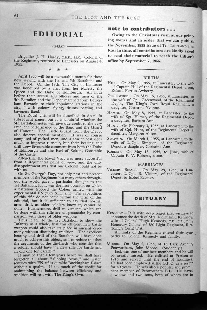 Collections - Publications The Lion and The Rose, The Regimental Journal Volume XLIII - Number 3 - August 1955