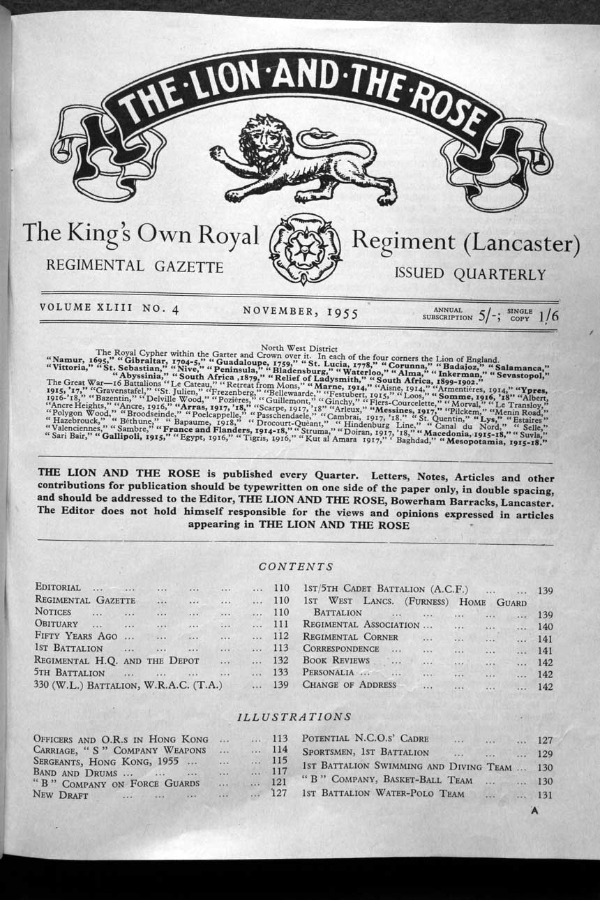 Collections - Publications The Lion and The Rose, The Regimental Journal Volume XLIII - Number 4 - November 1955