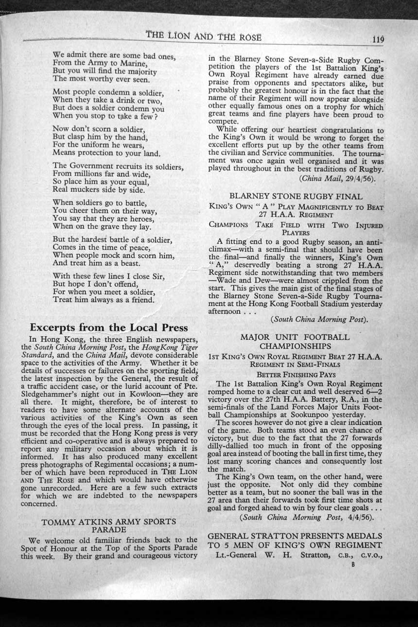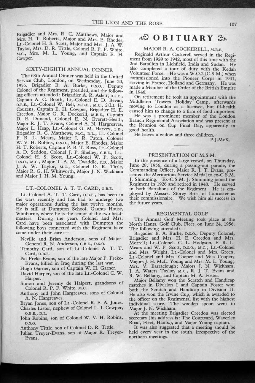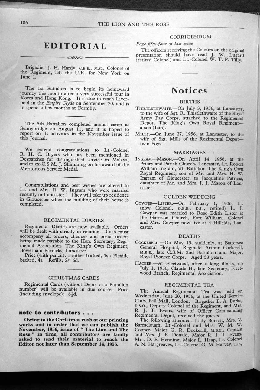 Collections - Publications The Lion and The Rose, The Regimental Journal Volume XLIV - Number 3 - August 1956