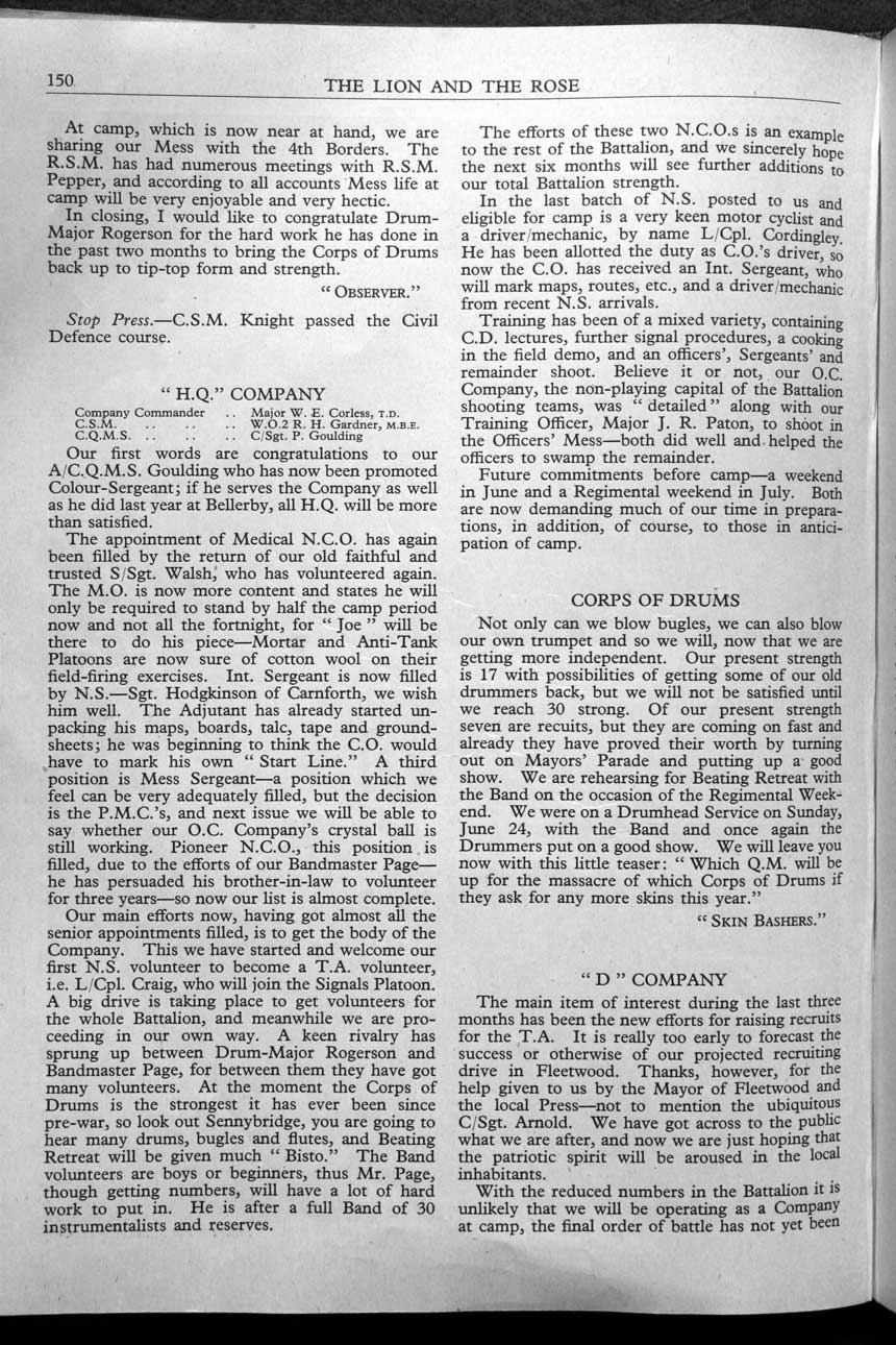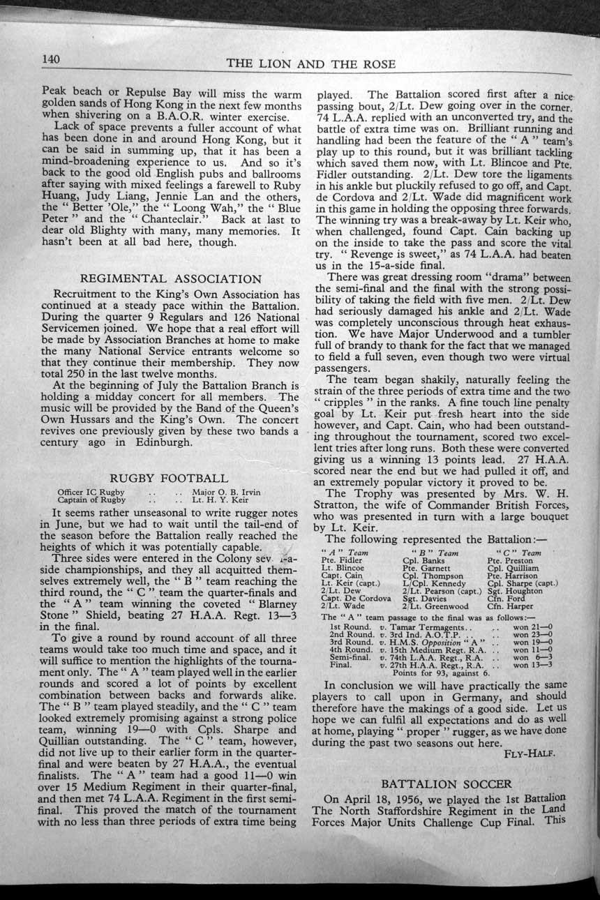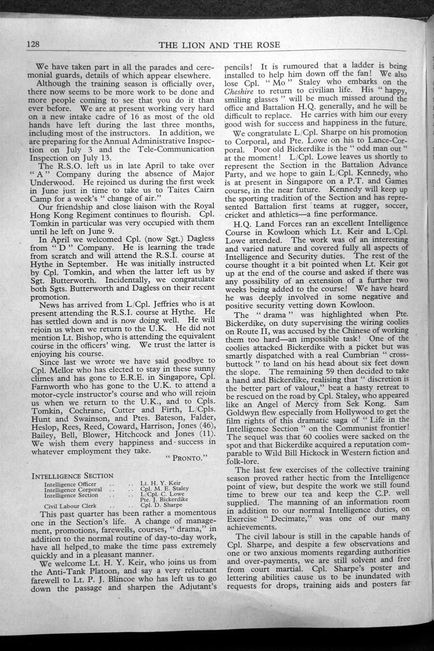 Collections - Publications The Lion and The Rose, The Regimental Journal Volume XLIV - Number 3 - August 1956