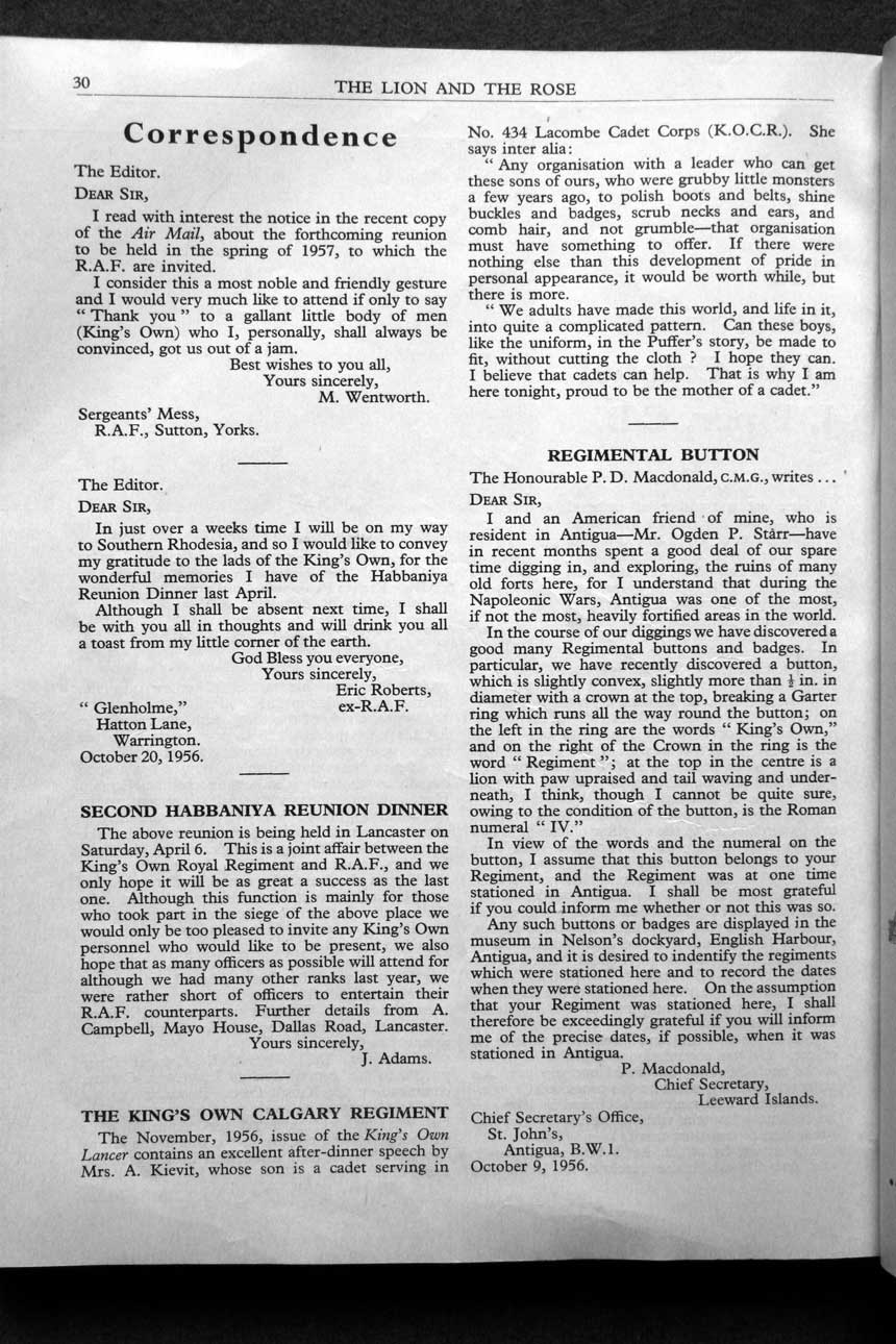 Collections - Publications The Lion and The Rose, The Regimental Journal Volume XLV - Number 2 - February 1957