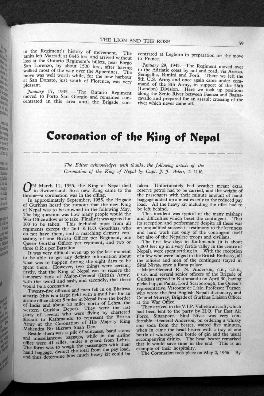 Collections - Publications The Lion and The Rose, The Regimental Journal Volume XLV - Number 2 - May 1957