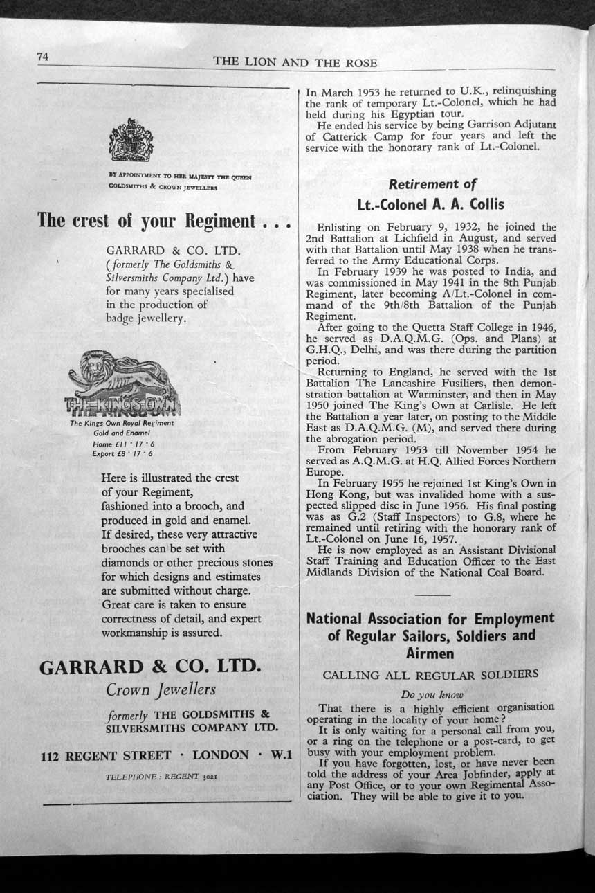Collections - Publications The Lion and The Rose, The Regimental Journal Volume XLV - Number 3 - August 1957