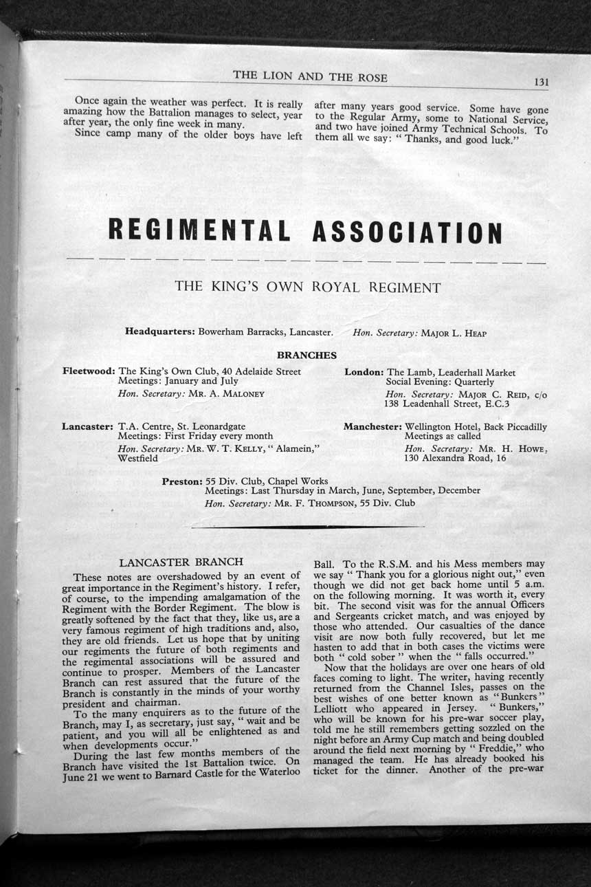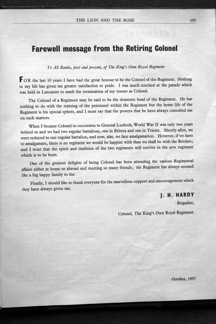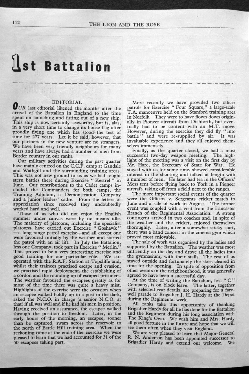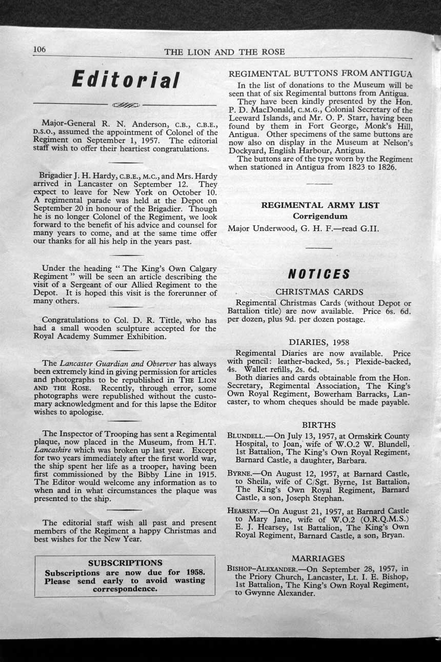 Collections - Publications The Lion and The Rose, The Regimental Journal Volume XLV - Number 4 - November 1957