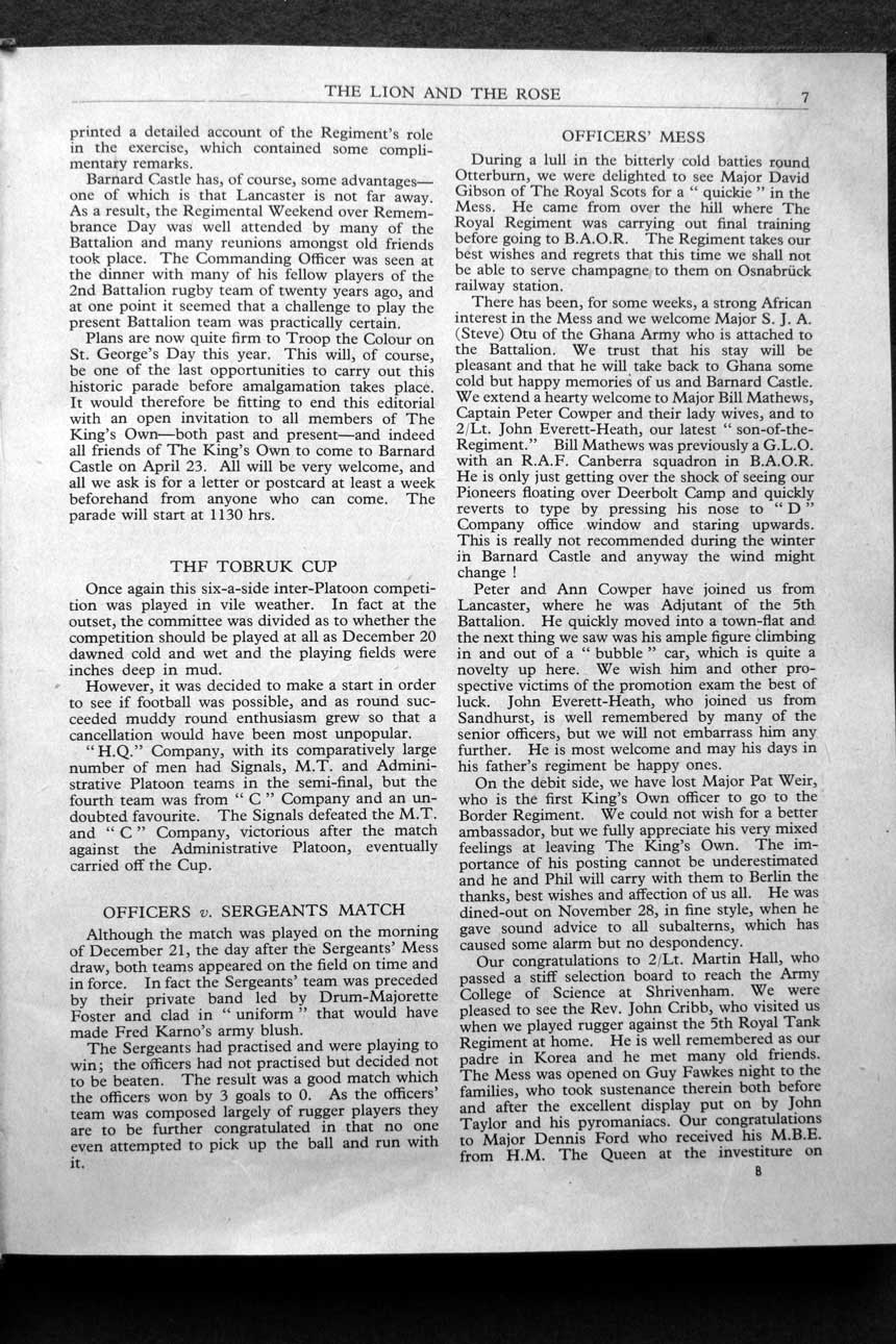 Collections - Publications The Lion and The Rose, The Regimental Journal Volume XLVI - Number 1 - February 1958