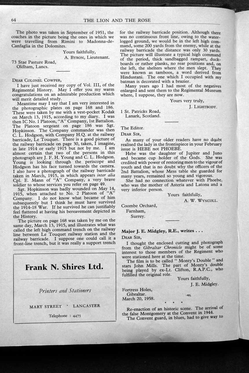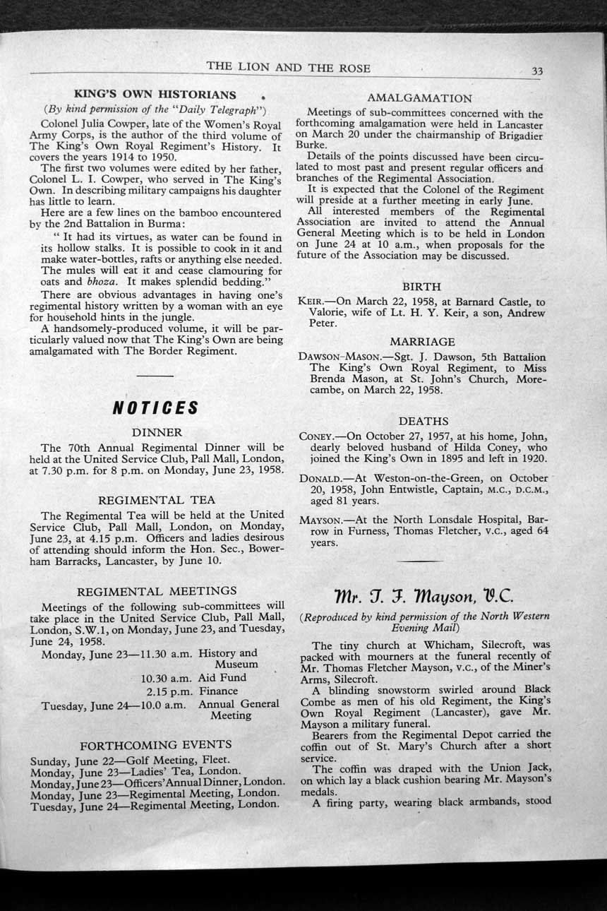 Collections - Publications The Lion and The Rose, The Regimental Journal Volume XLVI - Number 2 - May 1958