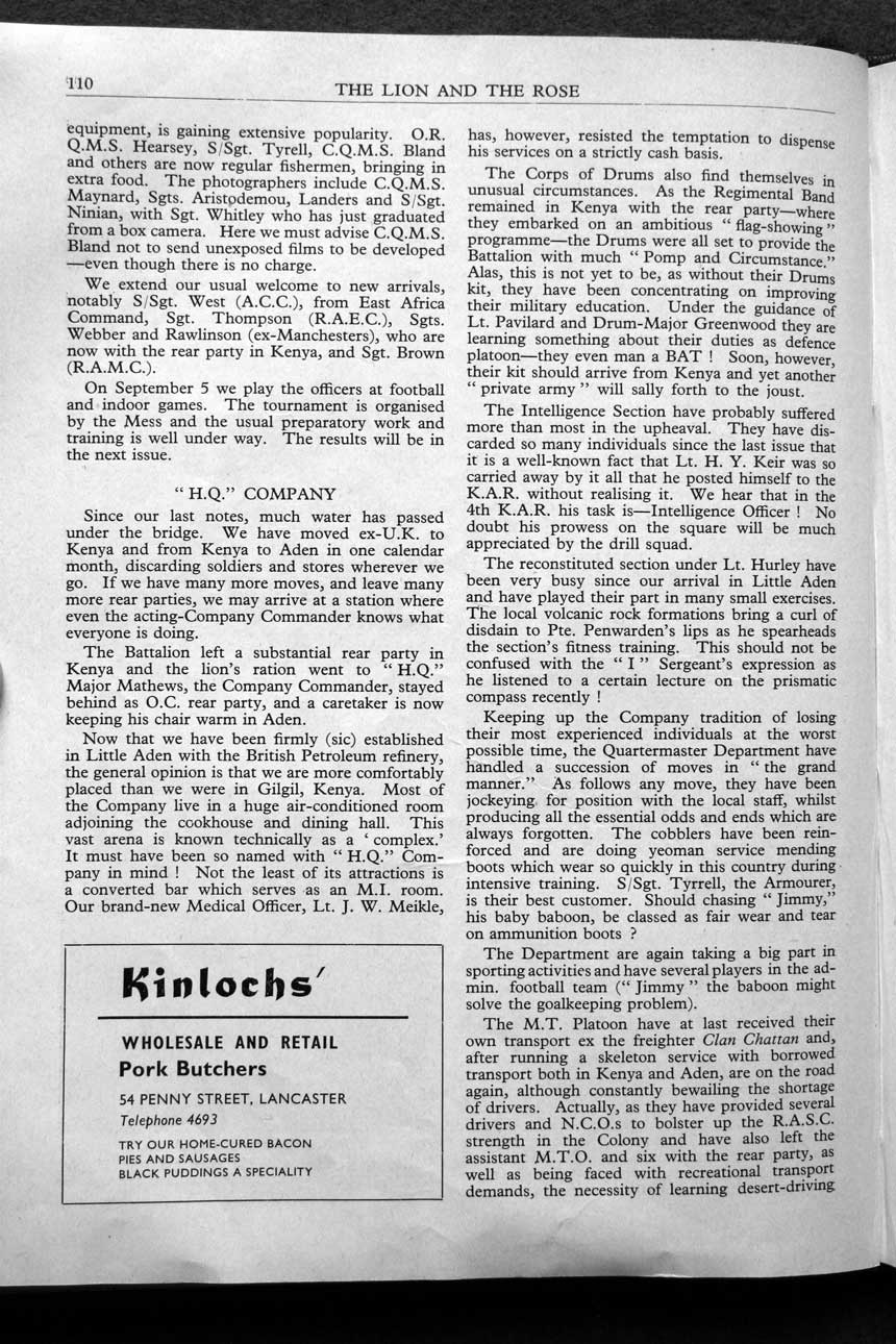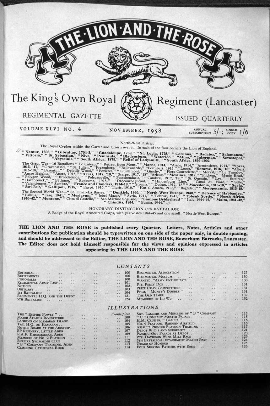 Collections - Publications The Lion and The Rose, The Regimental Journal Volume XLVI - Number 4 - November 1958