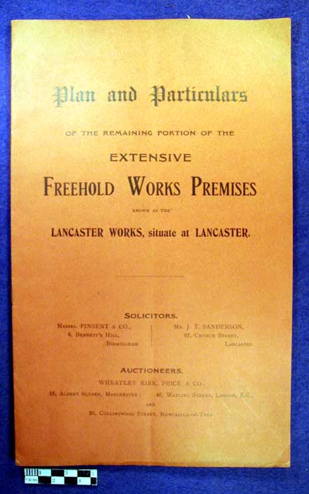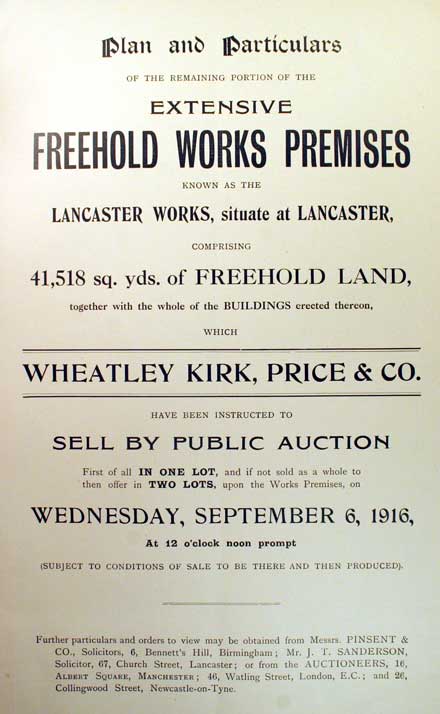 First World War - Caton Road, Lancaster Auction Catalogue for the Disposal of the Former Railway Wagon Works, Caton Road, Lancaster 6th September 1916