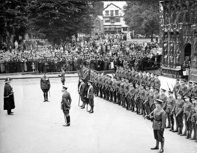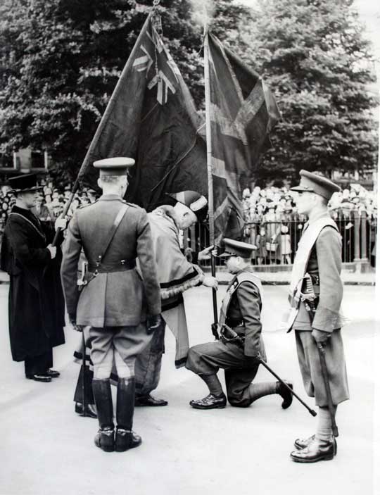 Photo Gallery Colour Ceremony, Exeter,17th May 1938 The 1846 Colours were placed in Exeter Guildhall in 1865, and were restored to the Regiment by Exeter Corporation on 17th May 1938, and the laid up in the Regimental Chapel on 9th July 1938.