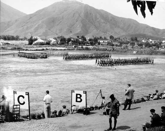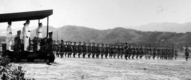 Regiment, Trooping the Colour, Hong Kong, St. George's Day, April 1955.