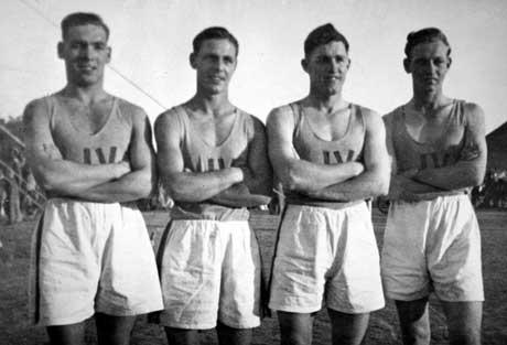 Winners, Services invitation relay race, Cawnpore.  Left to right: