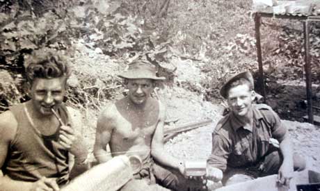 Camp, cookhouse duties. Left to right: Norman Burgess, Nick Shute