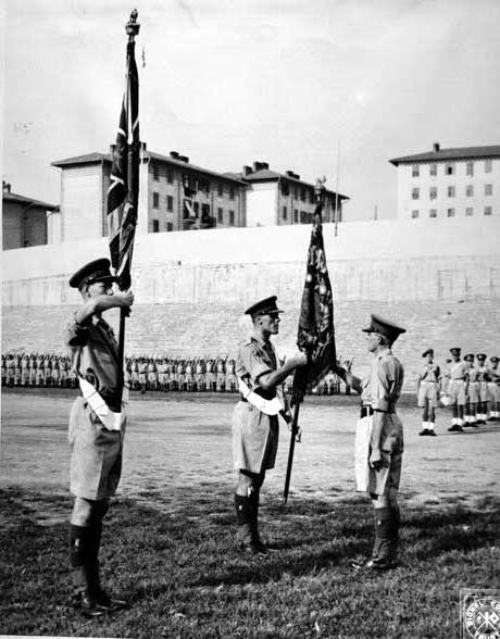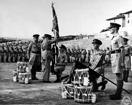 Major General R M Luckcock presents the King's Colour, Trieste, 1st