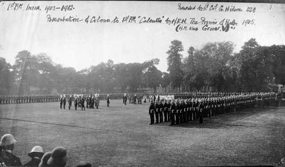 Photo Gallery Presentation of New Colours to the 1st Battalion, King's Own, 1905 The Colours were presented by HRH the Prince of Wales on 30th December 1905 in Calcutta.